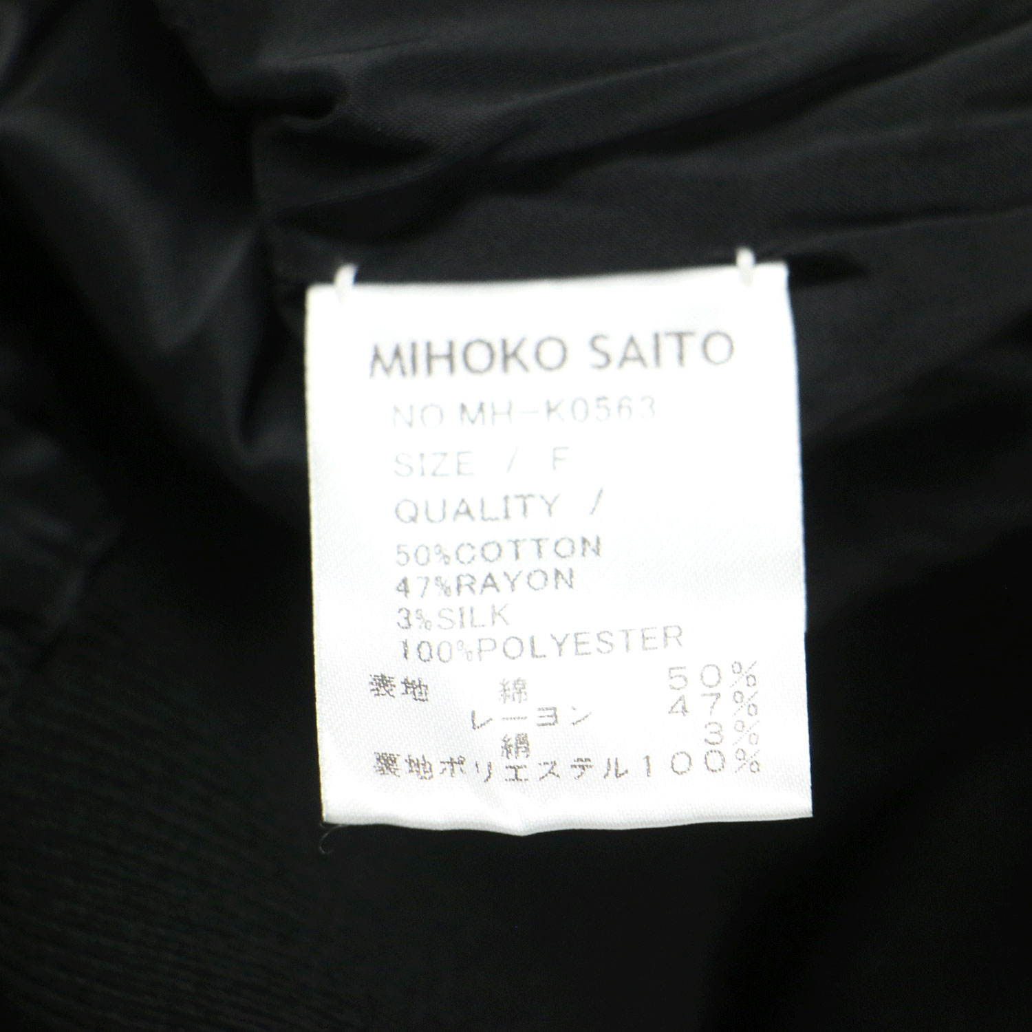 | 素材 | 表地 コットン 50% レーヨン 47% シルク 3% 裏地 ポリエステル 100% |