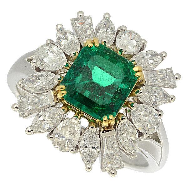 Mikimoto Emerald 1.55ct and Diamond 1.73ct Ring, PT900K18YG, Size 15.5.