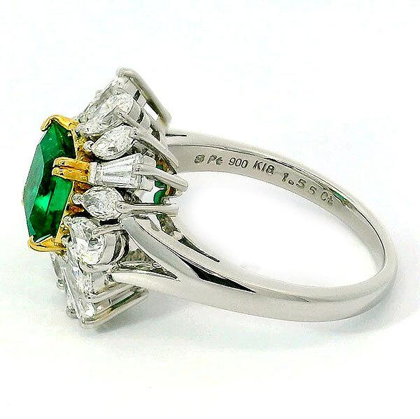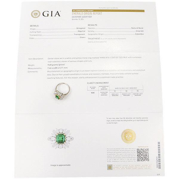 Category: JewelryType: RingBrand: MIKIMOTOSize: 15.5Design Width: 16.5mmGemstone: Diamond/Emerald (Colombia)Stamp: MIKIMOTO Mark, 1.55ct, PT900K18 1.73ctWeight: 9.6gMaterial: PT900 (Platinum 900) / K18YG (18K Yellow Gold)List Price: UnknownAccessories: Original Box, GIA CertificateCondition: A