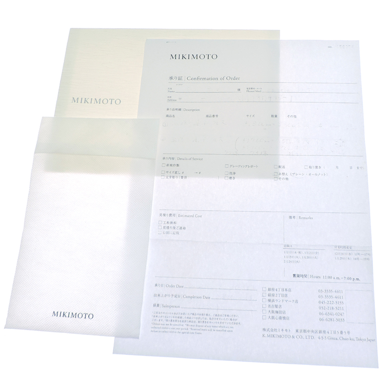 Repair certificate copy…faint printing. Weight: 37.9gStone type: PearlRestringed at Mikimoto in January 2026The actual color of the product may differ depending on the device and display you are using.