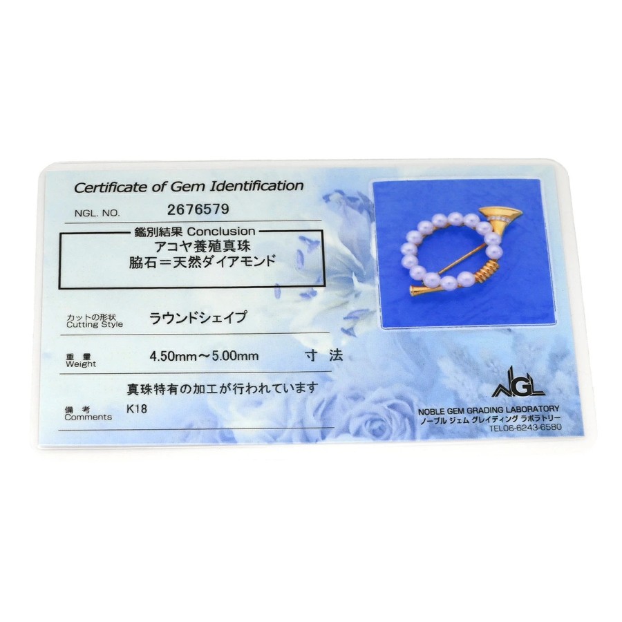 ミキモト MIKIMOTO ブローチ あこやパール ダイヤ K18YG ダイヤモンド パール パールホワイト×イエローゴールド Au750 18K 18金 YG 真珠 ホルンモチーフ ラウンドシェイプ - レディース定番 人気 美品 【中古】