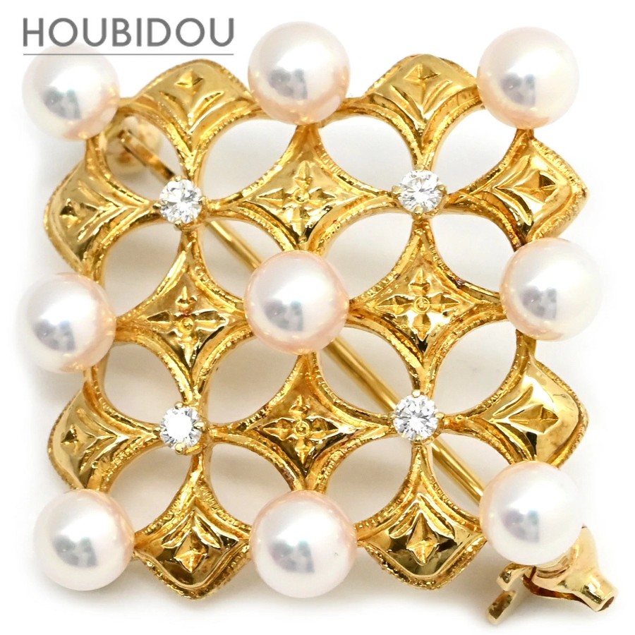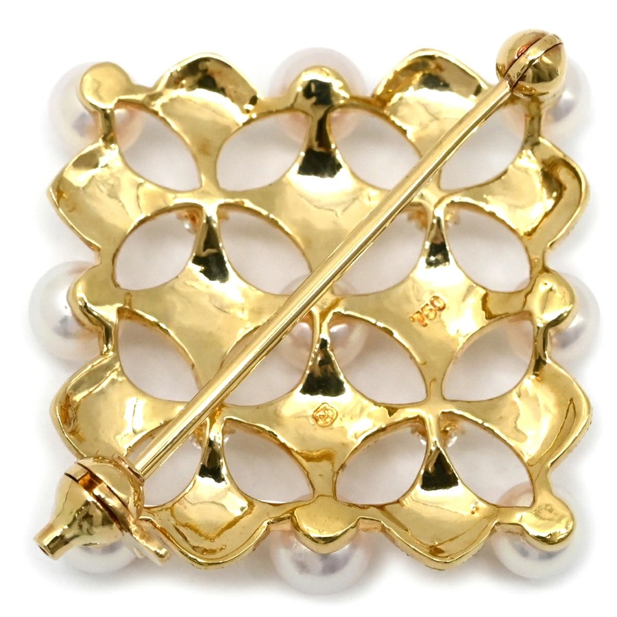 ミキモト MIKIMOTO ブローチ ベビーパール ダイヤ K18YG ダイヤモンド パール パールホワイト×イエローゴールド 白 Au750 18K 18金 YG 真珠 スクエア ひし形 ラウンドシェイプ - レディース定番 人気 美品 【中古】