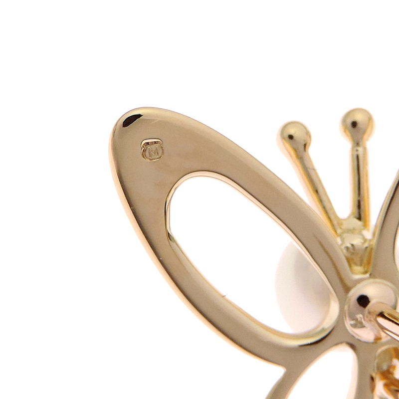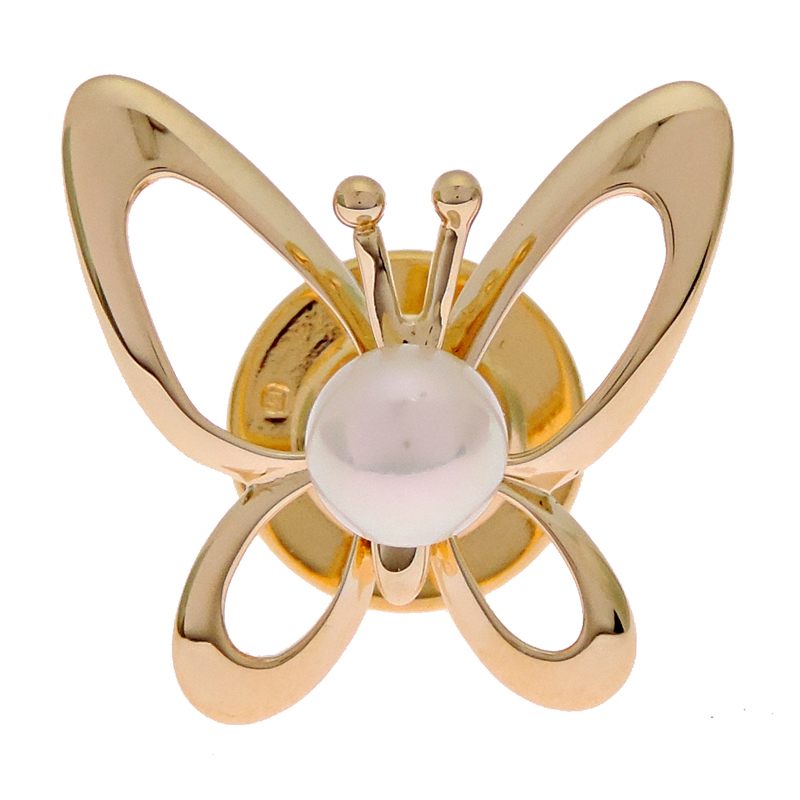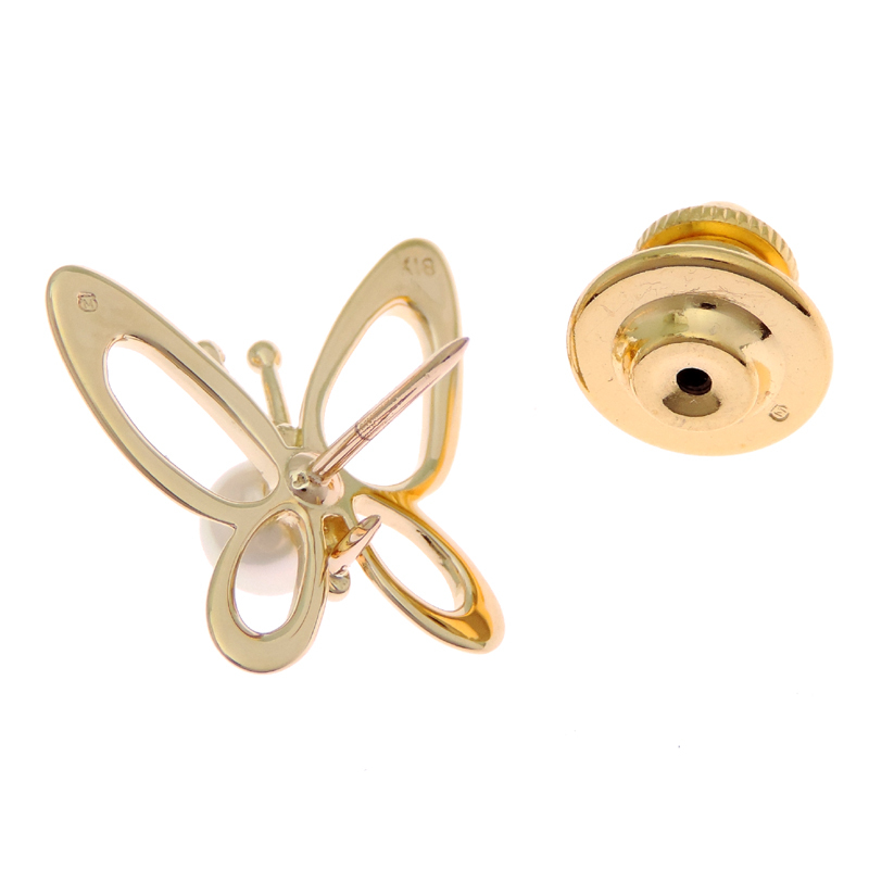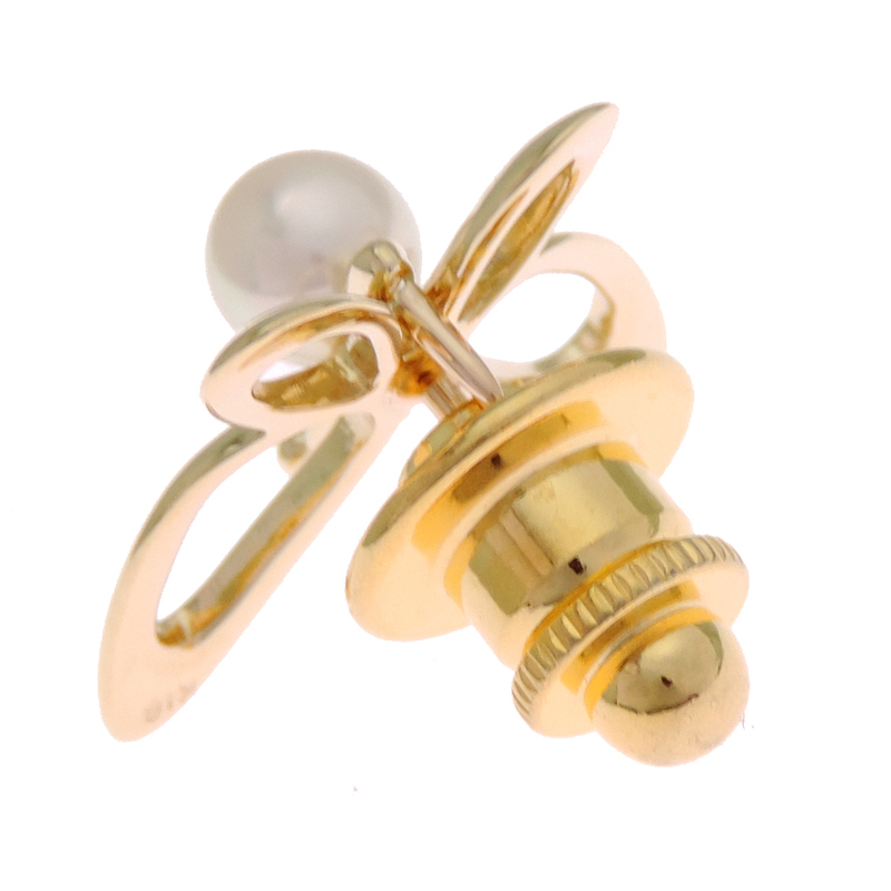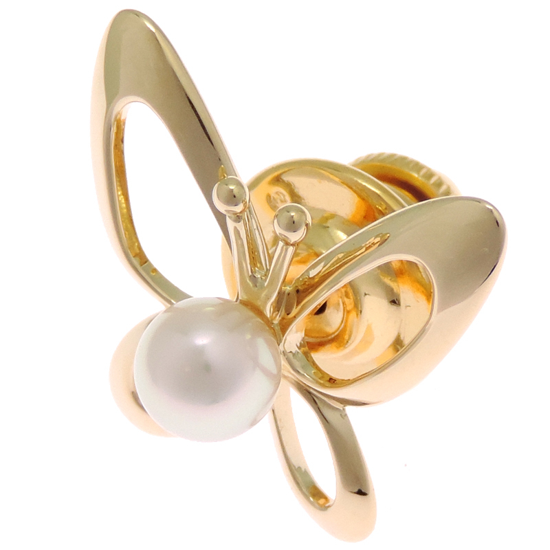 MIKIMOTO Butterfly Pearl Pin Brooch K18 Yellow Gold White