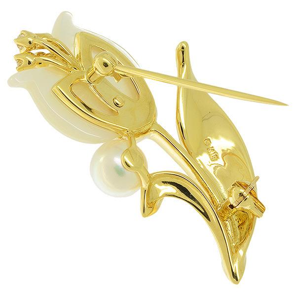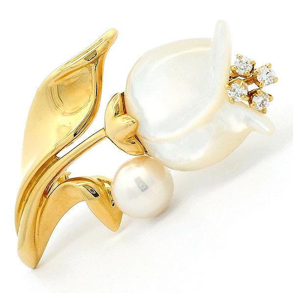 MIKIMOTO Flower Shell Akoya Pearl Diamond Brooch in 18K Yellow Gold
