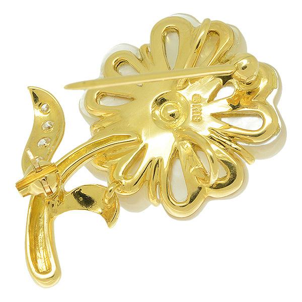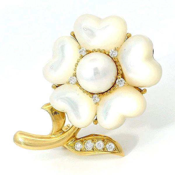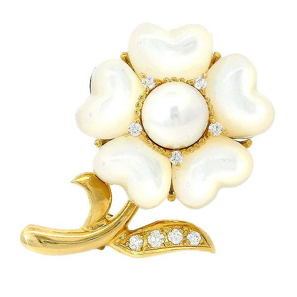 MIKIMOTO Flower Shell Akoya Pearl Diamond Brooch in 18K Yellow Gold