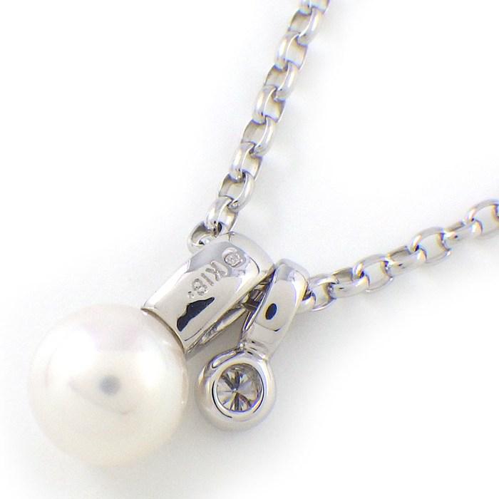 ■商品名MIKIMOTO ネックレス パール 6.5mm珠 1ポイント ダイヤモンド K18WG 【中古】