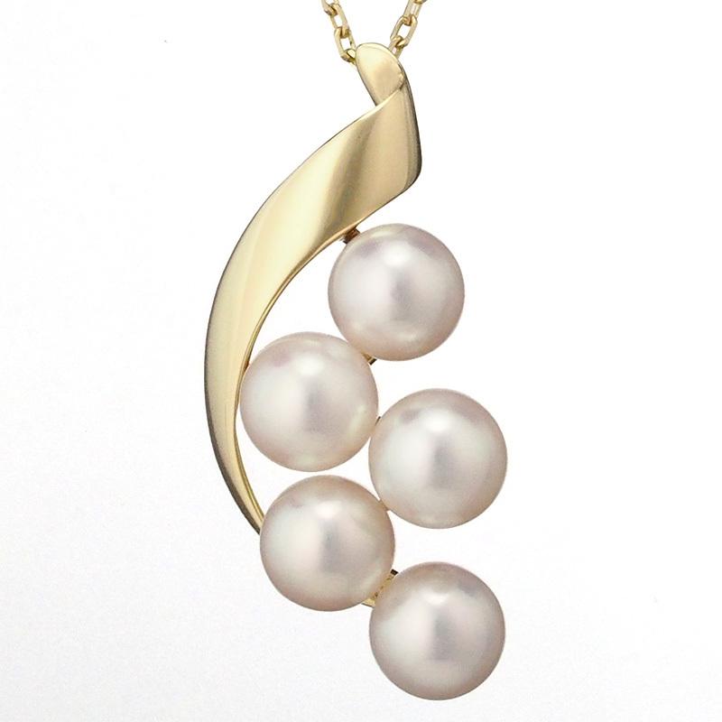 Note: This beautiful necklace is crafted from 14K yellow gold and features five brilliantly lustrous pearls, a hallmark of MIKIMOTO. Finished.