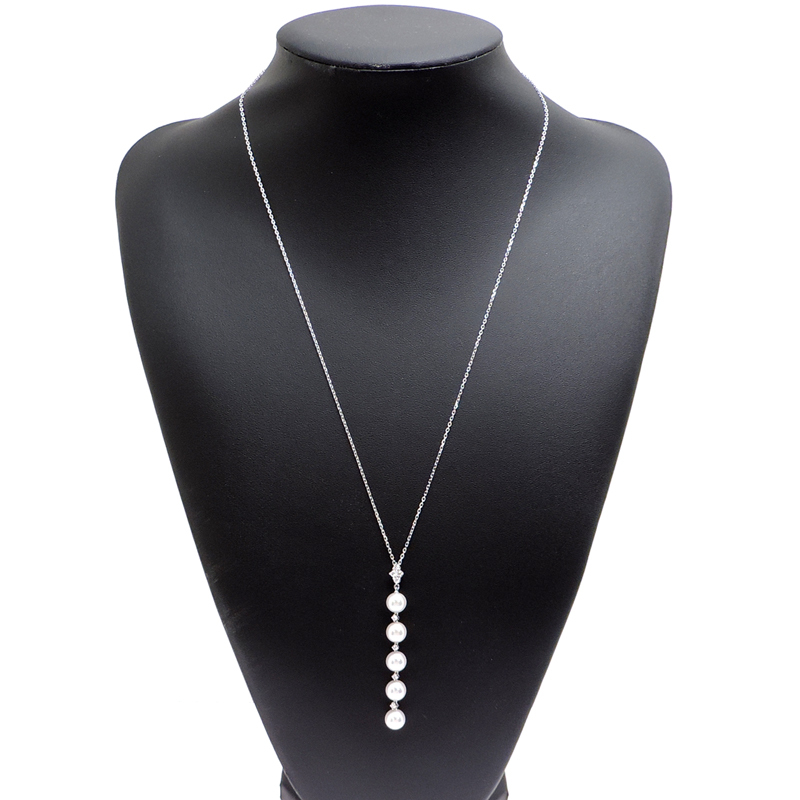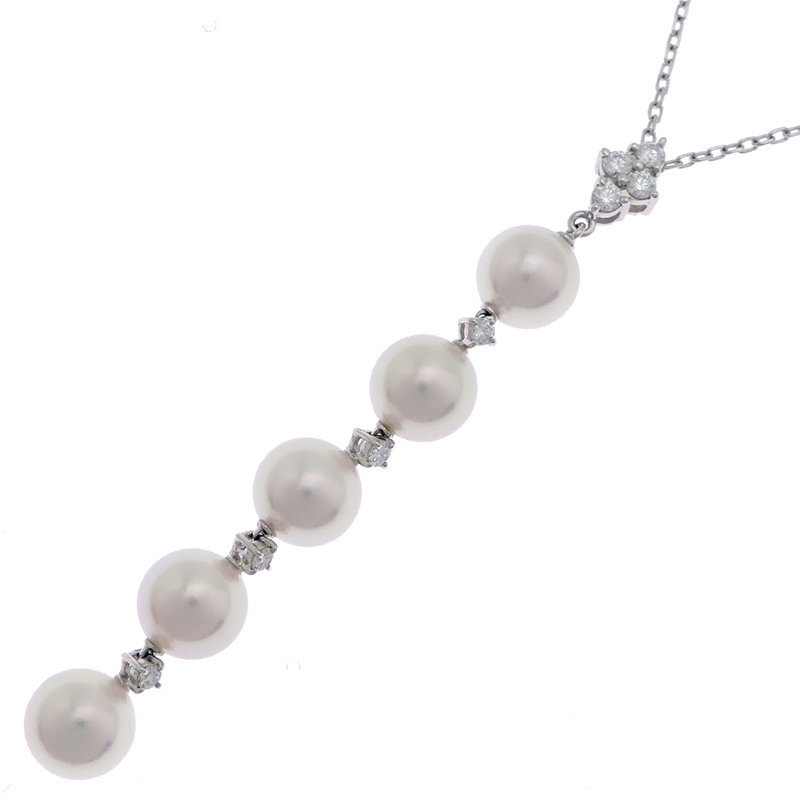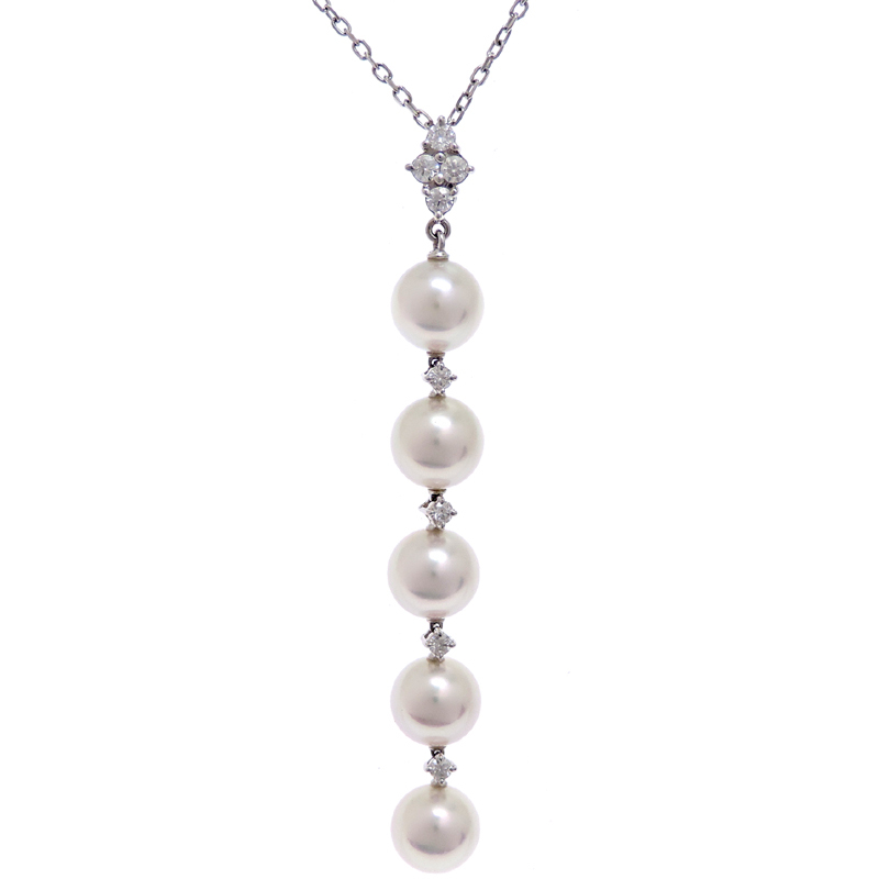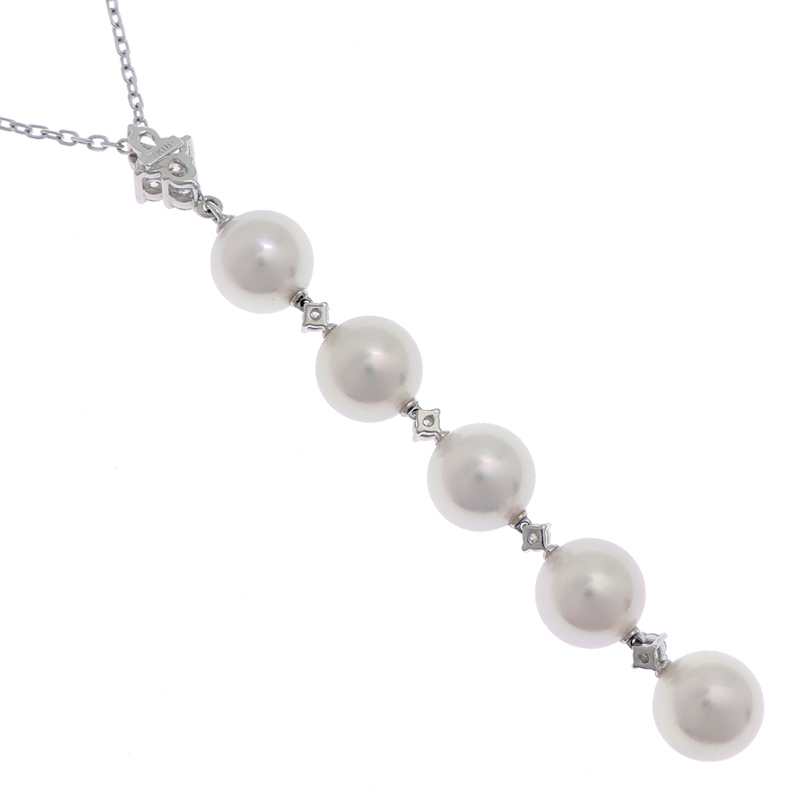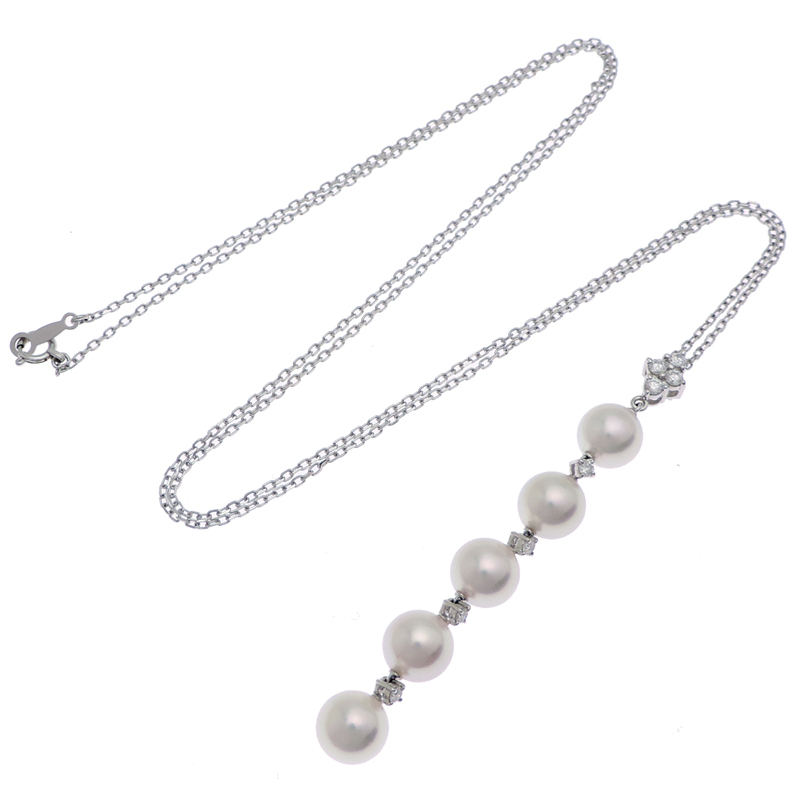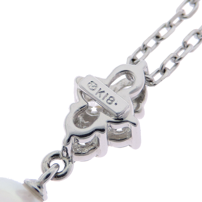 MIKIMOTO Pearl Diamond Necklace K18 White Gold White