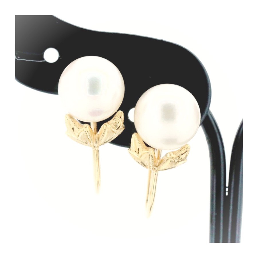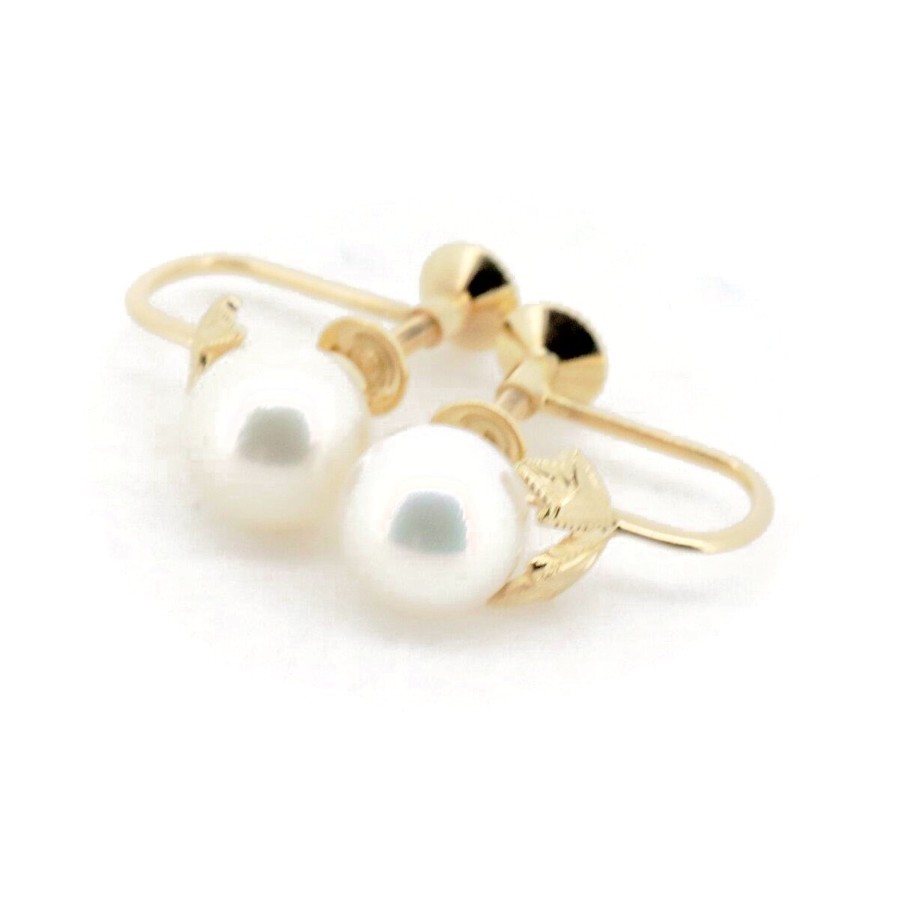Mikimoto Pearl Earrings, 6.8mm, K18YG (18k Yellow Gold)