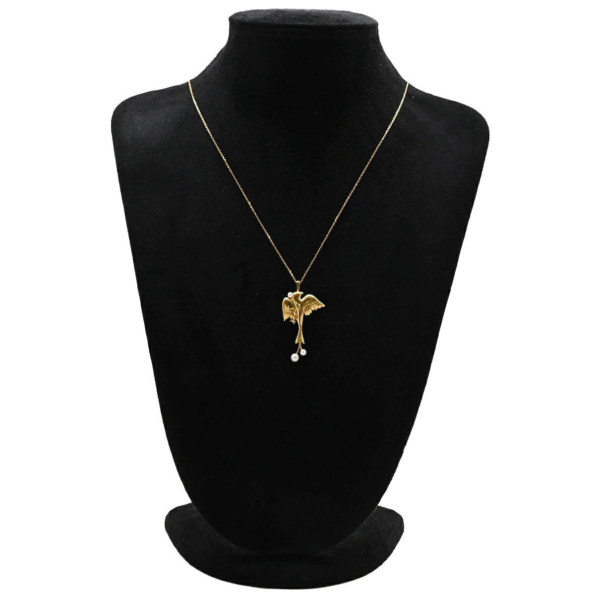 MIKIMOTO Pearl Necklace, 18K Yellow Gold with White Pearl, MIKIMOTO Brooch, 18K Gold with Au750 Bird Motif, Pre-owned, Boxed