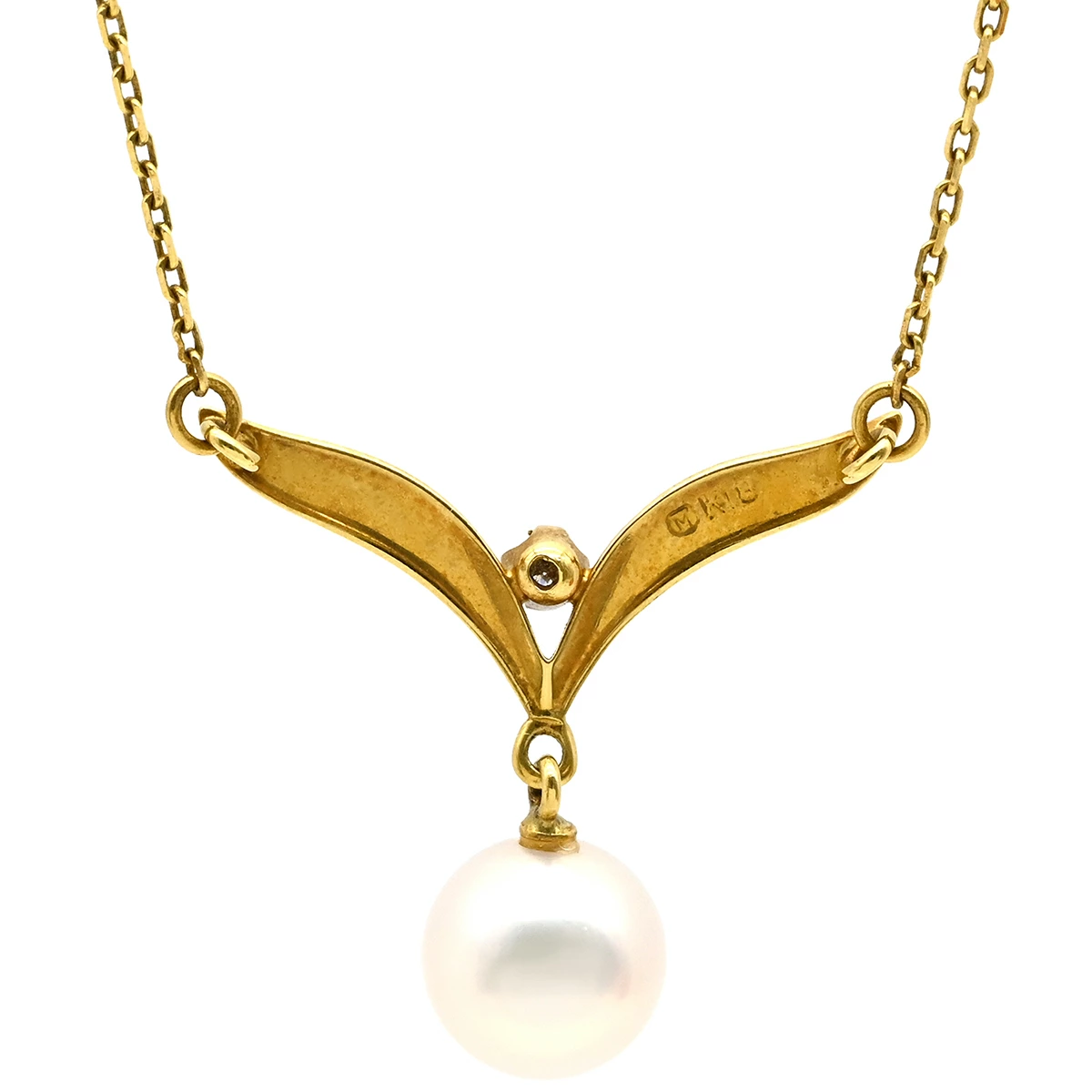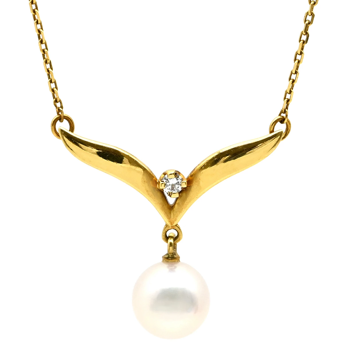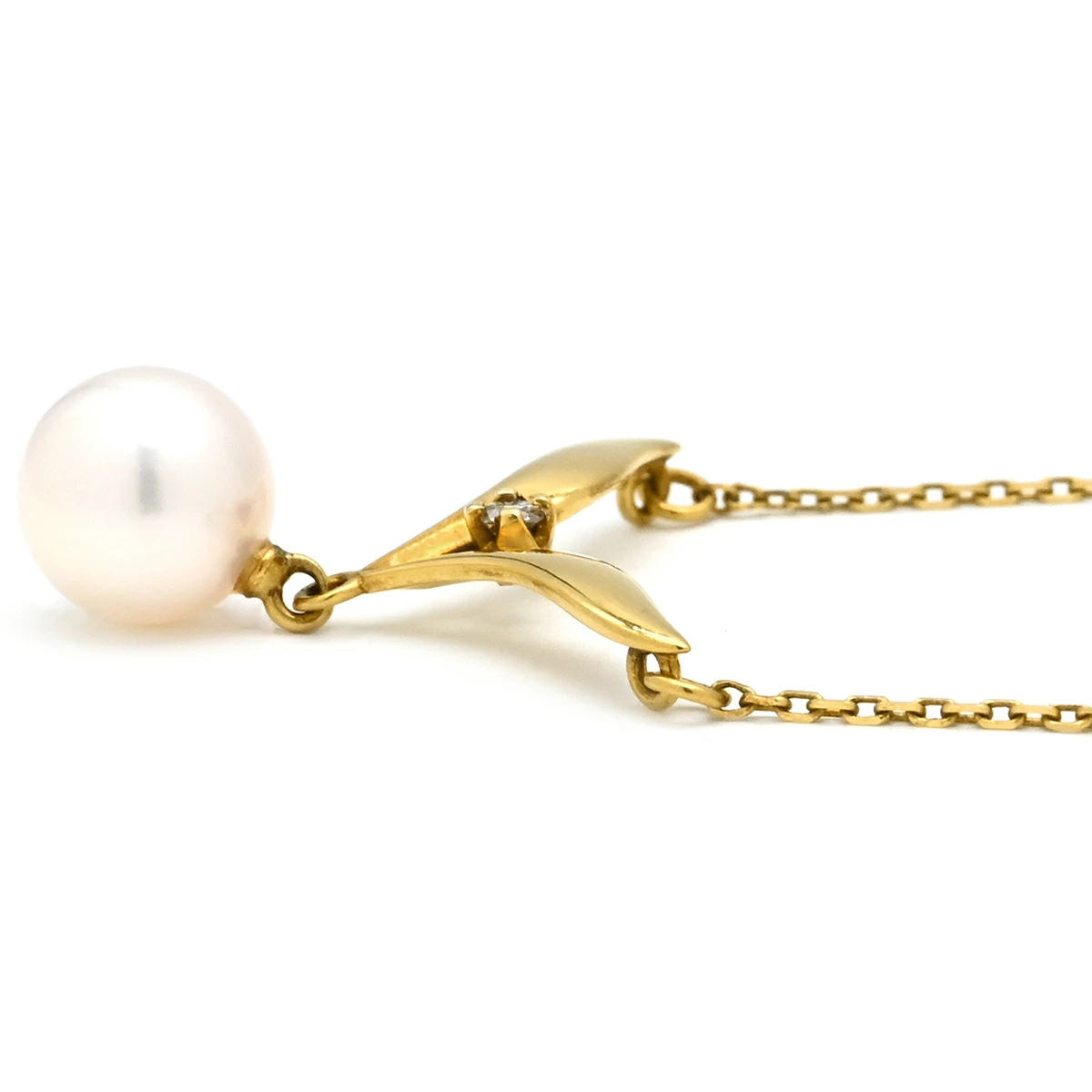 ミキモト MIKIMOTO ネックレス パールネックレス K18YG パール ダイヤモンド イエローゴールド×パールホワイト MIKIMOTO 真珠 18K 18金 Au750 ダイヤ - レディース定番 人気 美品 【中古】