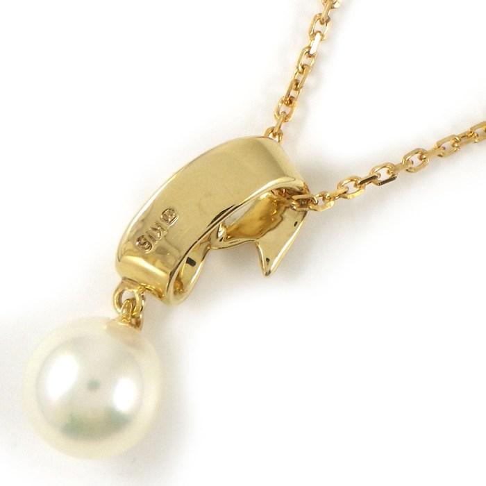 MIKIMOTO ネックレス リボン アコヤ真珠 7.0mm珠 K18YG 【中古】
