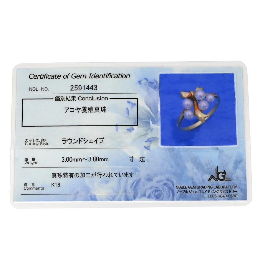 Mikimoto Ring, 18K White Gold (Au750), 18K Gold, Akoya Pearl, Baby Pearl, Ribbon Motif, Size 11