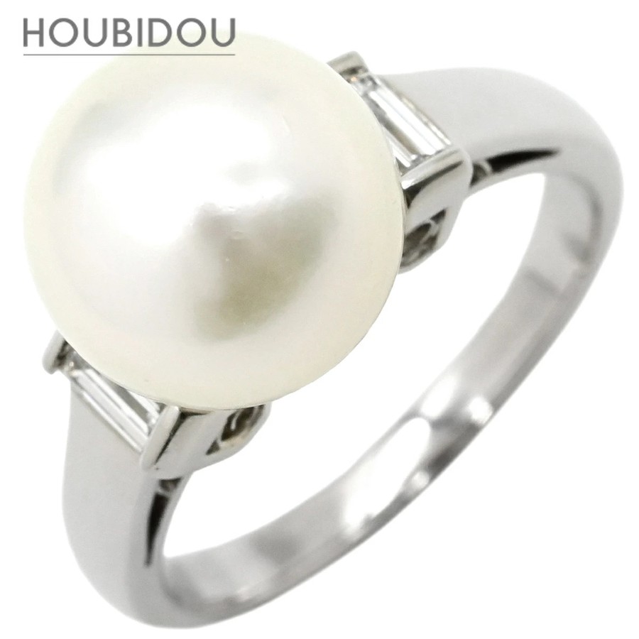 ミキモト MIKIMOTO リング 指輪 サイドストーン 大粒パール Pt950 パール ダイヤモンド パールホワイト×プラチナシルバー Pt950 真珠 アコヤ ダイヤ バケットカット - 13号 レディース定番 人気 美品 【中古】