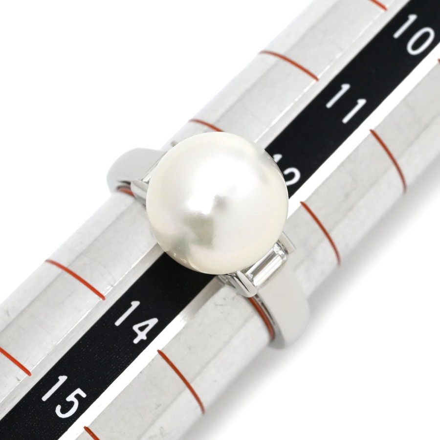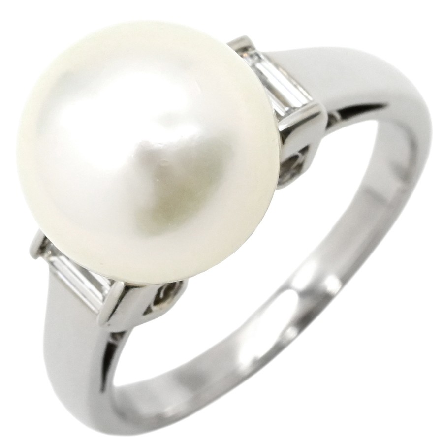 Mikimoto Ring, Side Stone, Large Pearl, White, Pearl White, Pt950, Akoya Pearl, Diamond, Baguette Cut, Size 13