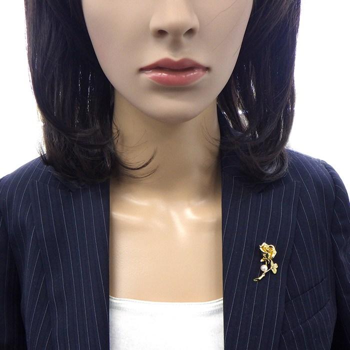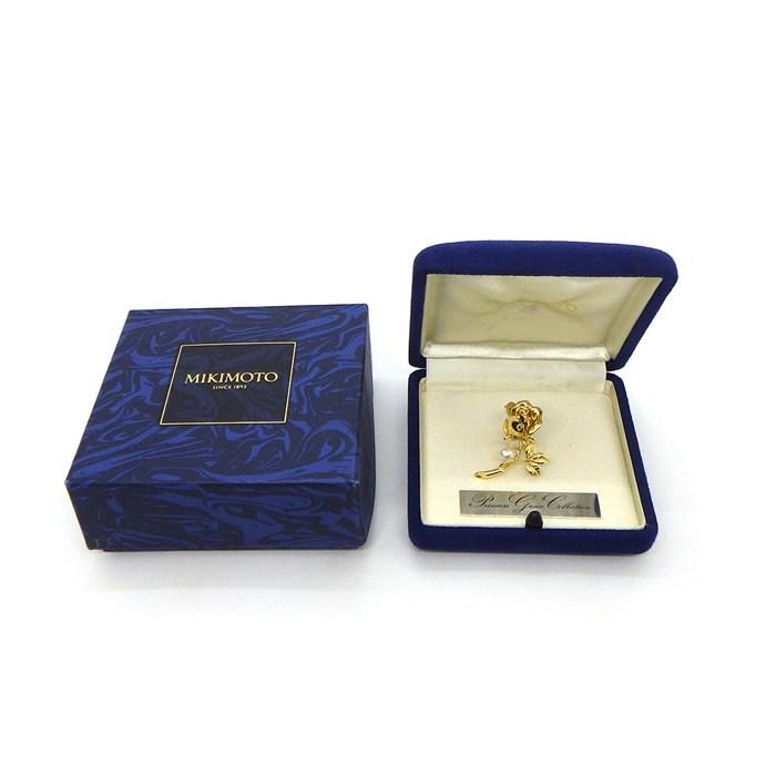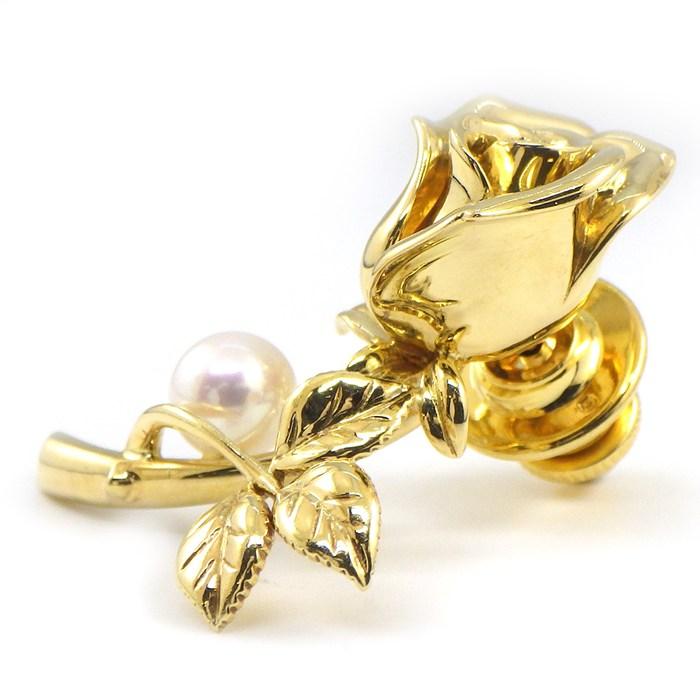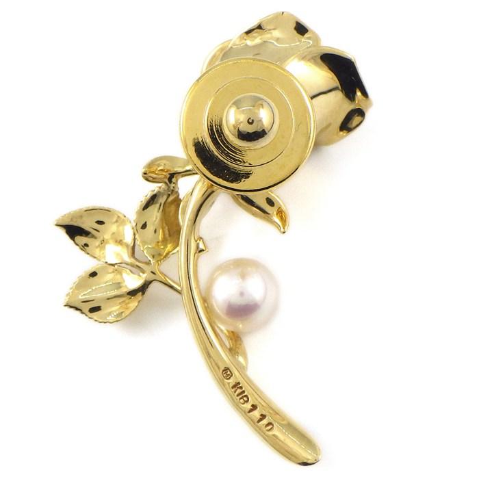 ■商品名MIKIMOTO ブローチ 薔薇 ローズ モチーフ 1ポイント パール 5.7mm珠 K18YG 【中古】