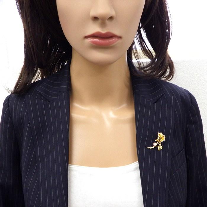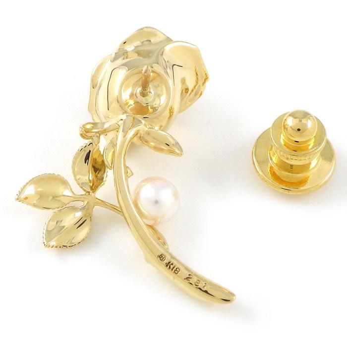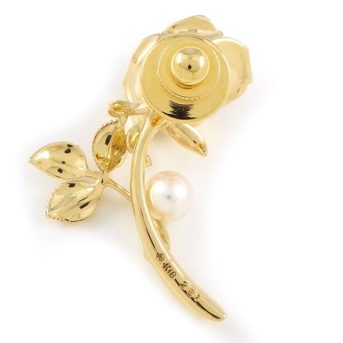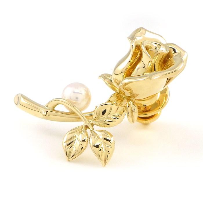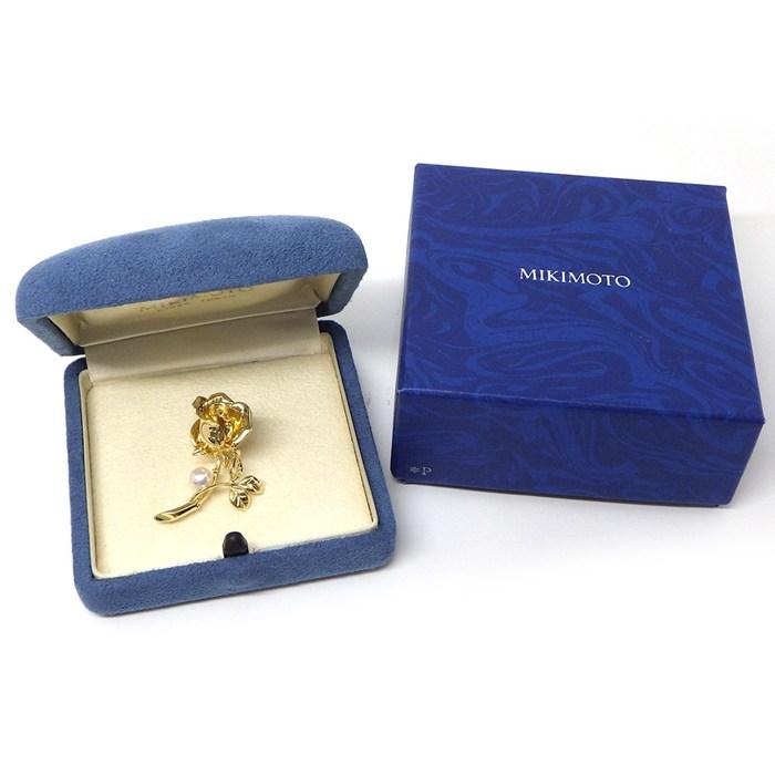 MIKIMOTO ピンブローチ 薔薇 ローズ モチーフ 1ポイント アコヤパール 5.5mm珠 K18YG 【中古】