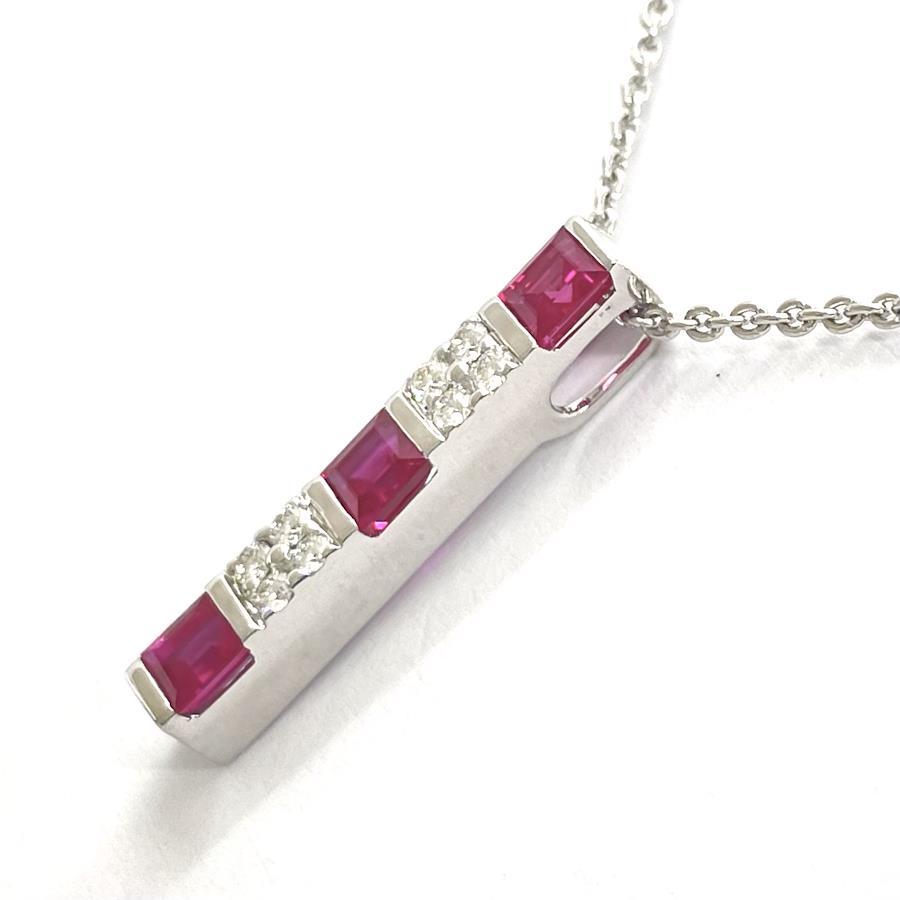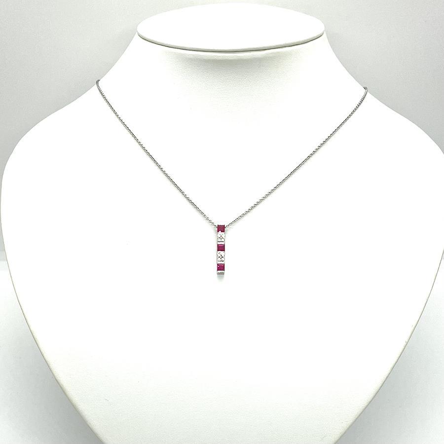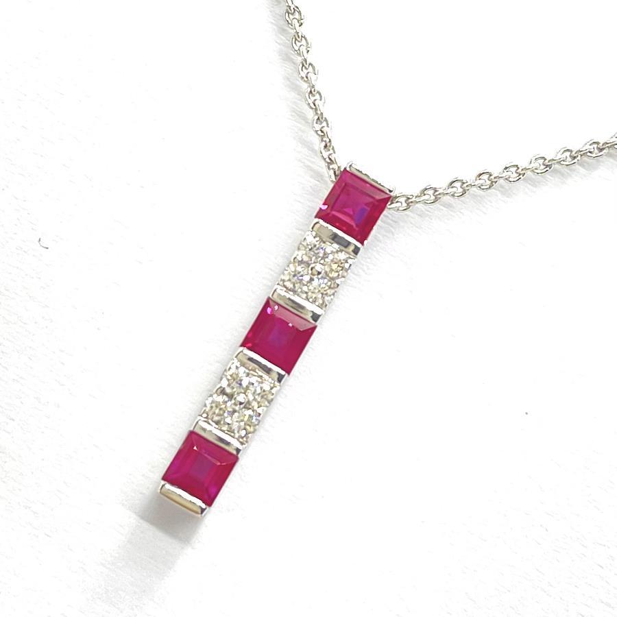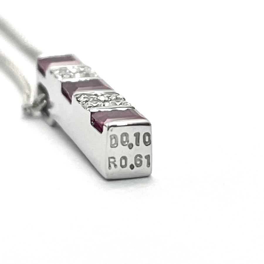 【ブランド】ミキモト【商品名】ルビーダイヤモンドネックレス【素材/材質】K18WG【石目】ルビー 0.61ct / ダイヤ 0.10ct【総重量】約4.6g【トップサイズ】約21.2×3.3mm【チェーン】長さ 約42cm(約39cm+アジャスター約3cm) トップの取り外し不可【商品の状態】新品仕上げ済み【付属品】ネックレスケース ※メーカーケースはございません。当店指定のジュエリーケースに入れてお届けします。