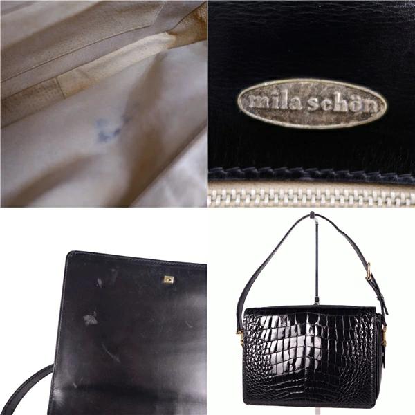 ■商品名ミラ ショーン mila schon バッグ ハンドバッグ シャイニークロコ ワニ革 カバン レディース ブラック サイズ-■状態説明・高級感溢れるシャイニークロコ(ワニ革)を贅沢に使用したハンドバッグです♪・シックなカラーリングが上品な印象を与える一品です◎・フラップ裏にスレキズと内装に汚れが御座いますが、ご使用に差し支えるものはなくまだまだお使い頂ける状態です!【季節感:オールシーズン】【付属品:なし】■素材クロコダイル(ワニ革)■カラーブラック■表記サイズ-■実寸サイズ高さ:約17cm横:約22cmマチ:約5cmハンドル:約51cm■状態ランクB 使用感はあるが傷や汚れの少ない良好な状態■店舗管理番号cf03mm-rm05f09149womens_black