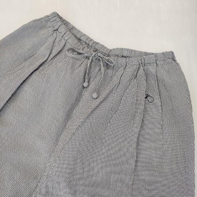 | 仕様 | フロント:なし ポケット:あり 透け感:なし 裾:シングルステッチ ウエスト調整:ゴム(紐あり) 裏地:なし |