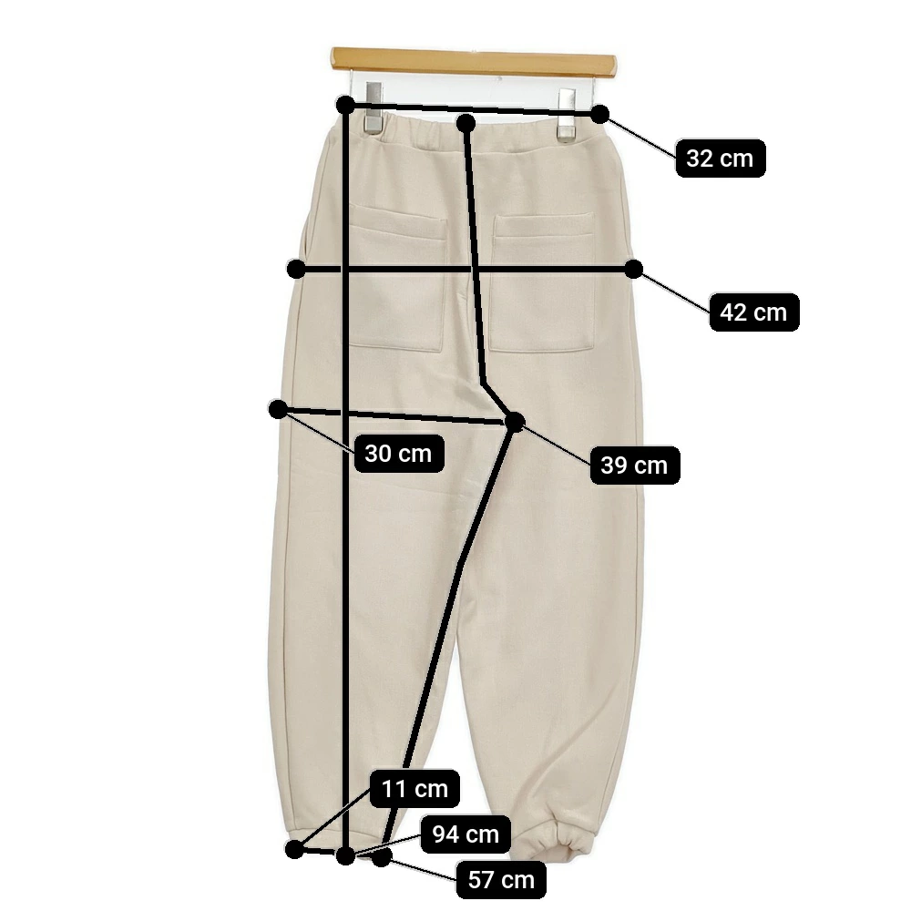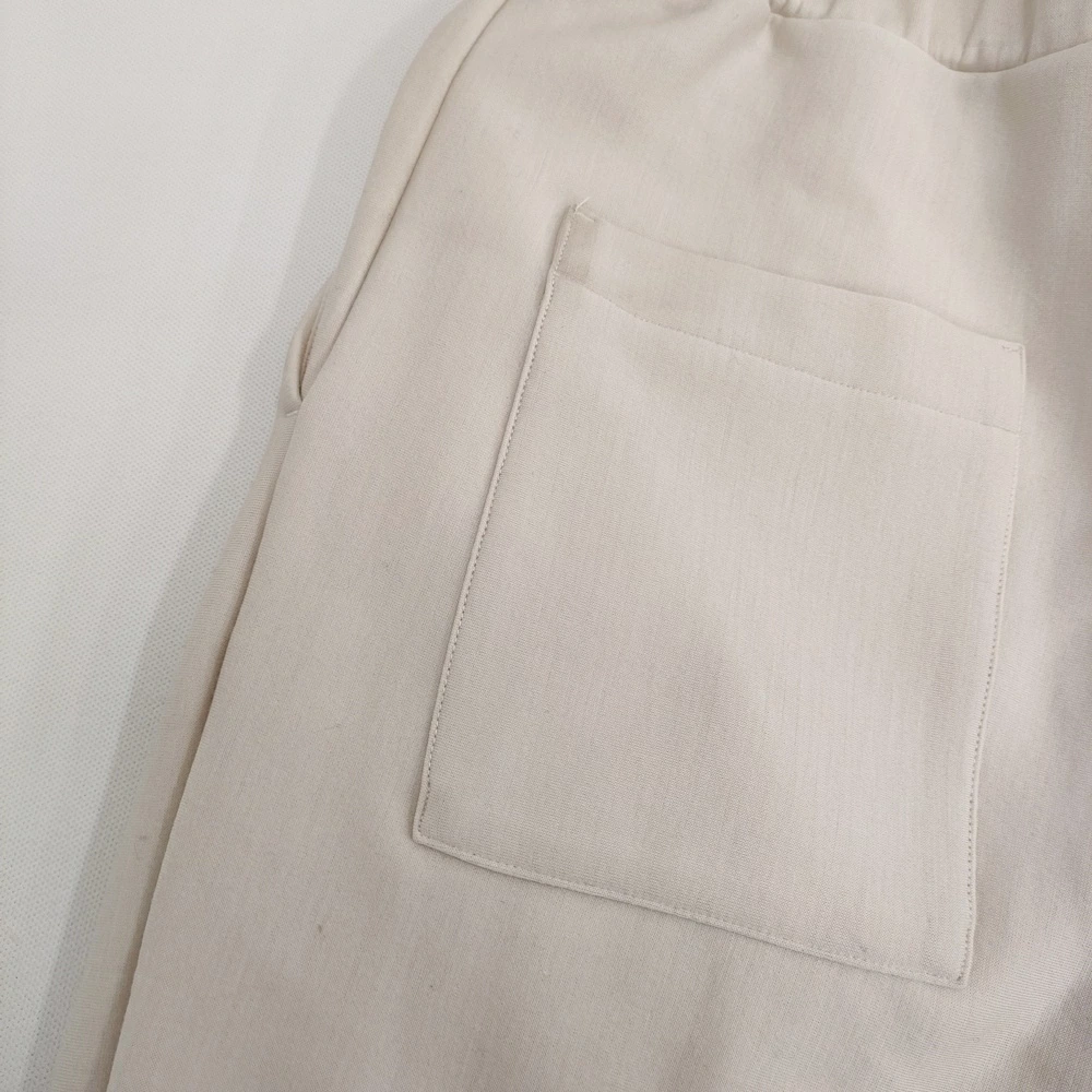 | 仕様 | フロント: なし ポケット:あり 透け感: なし 裾: ゴム ウエスト調整: ゴム(紐なし) 裏地: なし |
