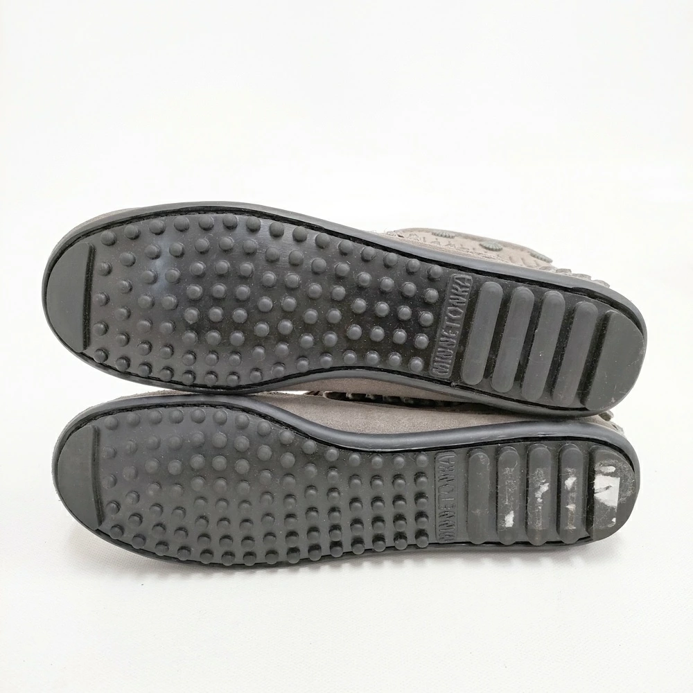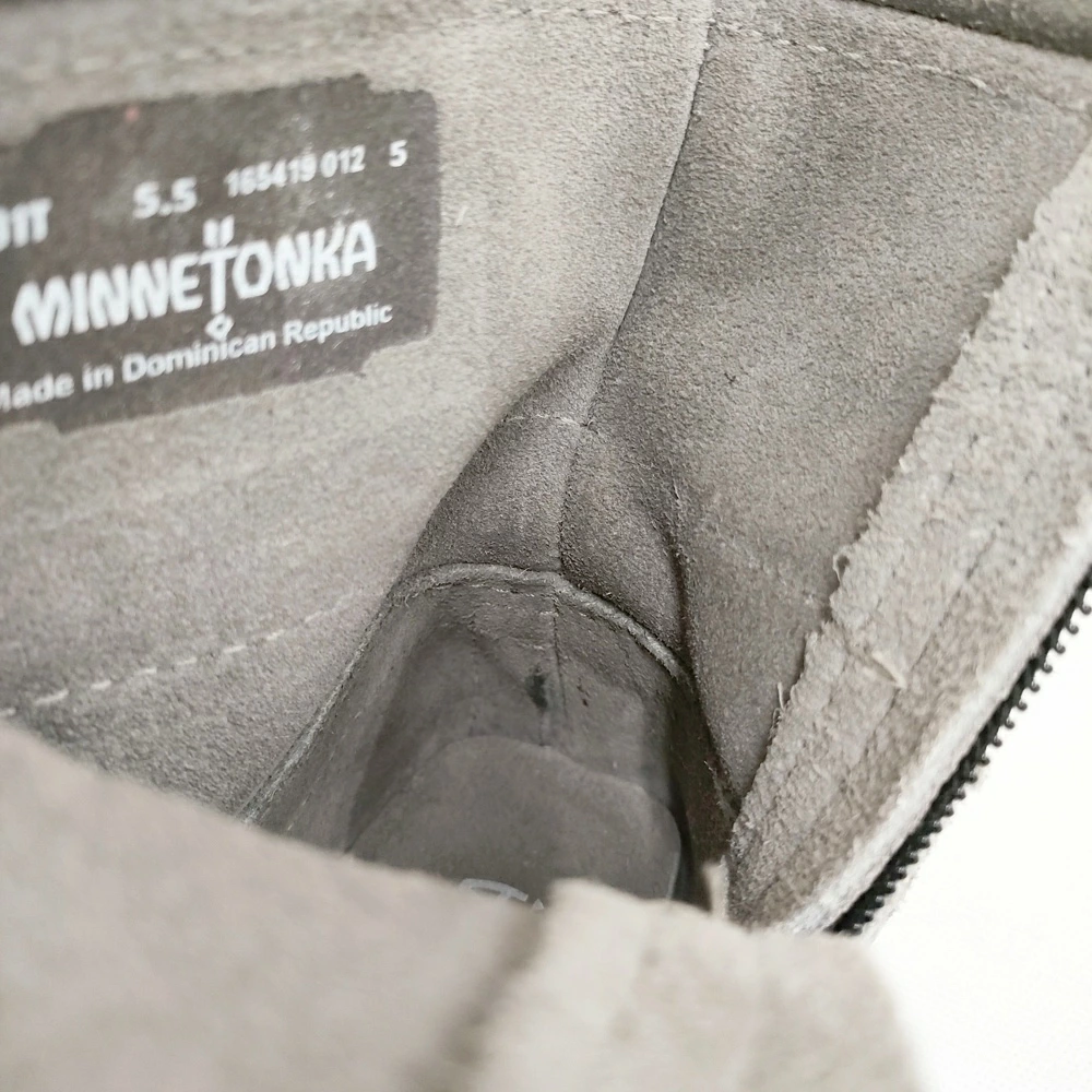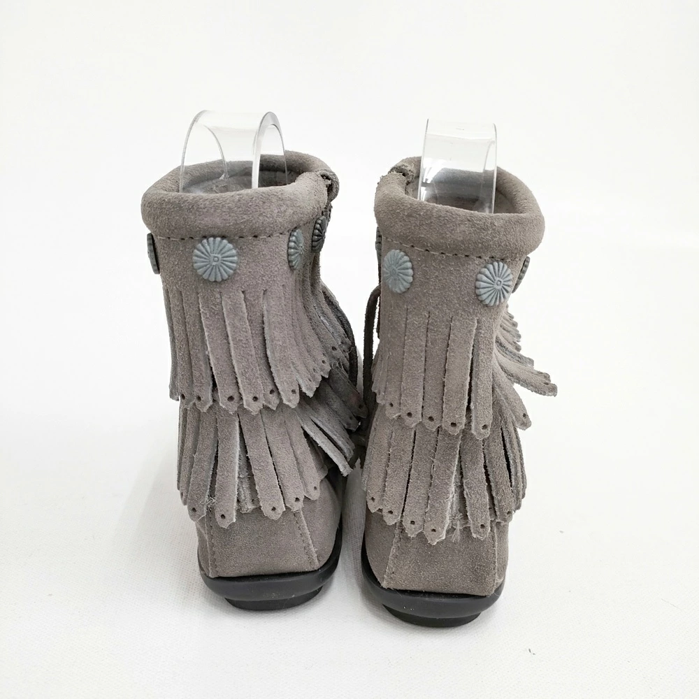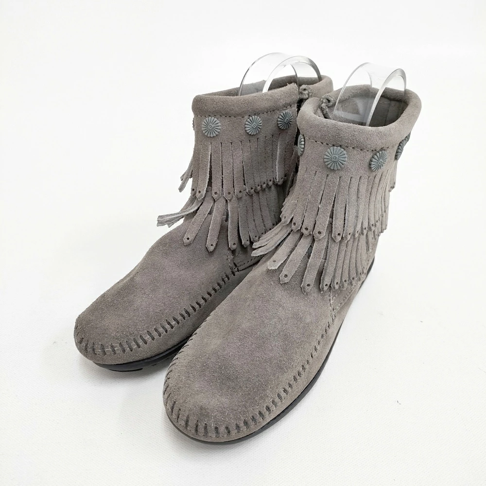 Minnetonka Women's Double Fringe Side Zip Short Boots, Size 5.5, Gray, Pre-owned, Minnetonka 5-1120T
