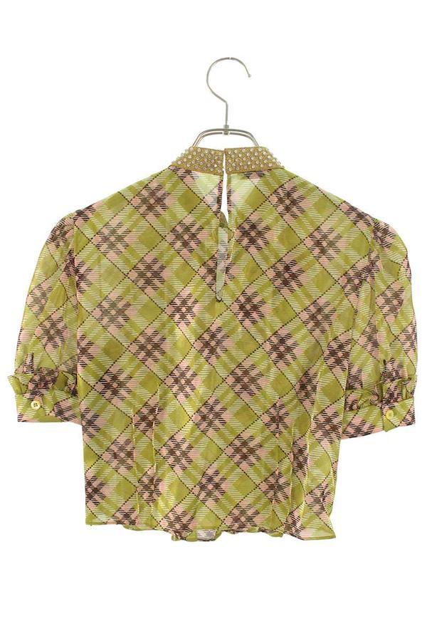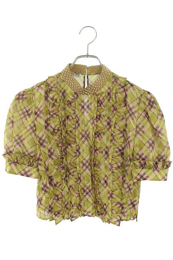 Miu Miu <br> Size: 38 MT1651 Beaded Check Short Sleeve Shirt (Light Green) [102152] [BS99] [Women's] [Pre-owned] bb132#rinkan*B