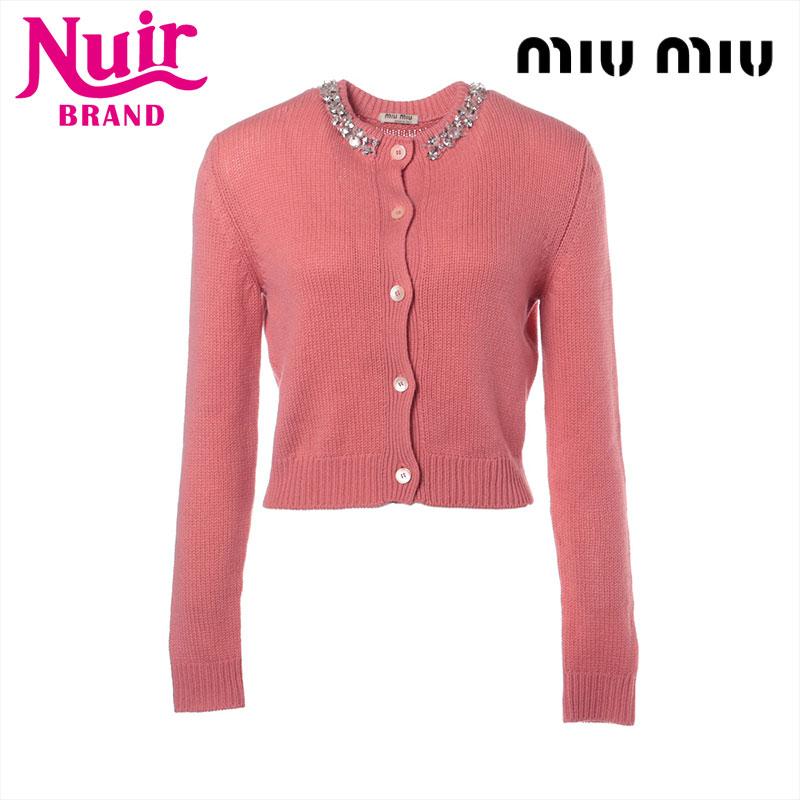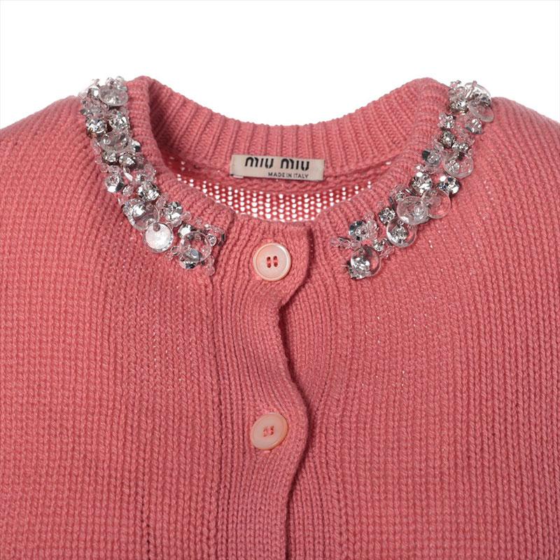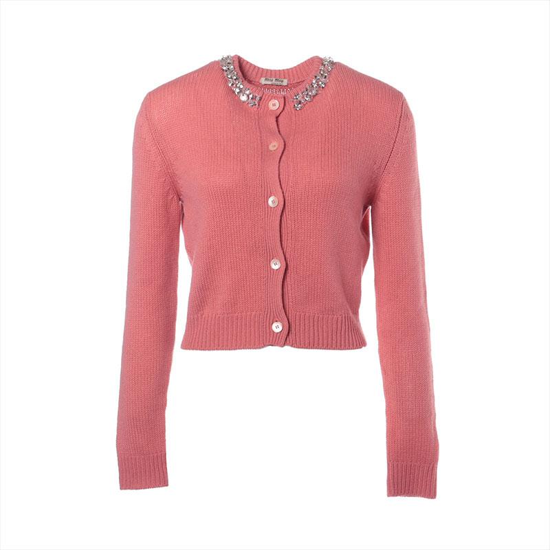 Miu Miu Cashmere Beaded Rhinestone Cardigan, Size 36, Pink, WS15899