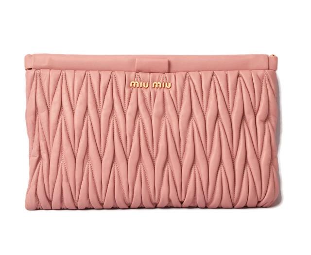 商品説明 | ミュウミュウより、2wayでご使用が可能なクラッチバッグ兼用ポーチです。独特のシワ加工を施したレザーで立体感を持たせ、ふんわり感のある触り心地が女性に人気です。普段のちょっとしたお出かけから、パーティバッグまで幅広くお使い頂けます。折財布や、コインケース、ハンカチ、リップなど小物の収納に最適なサイズです。【 用途 】ハンドバッグ、パーティバッグ、クラッチバッグ |