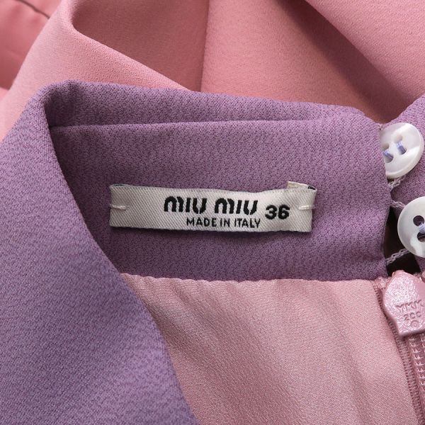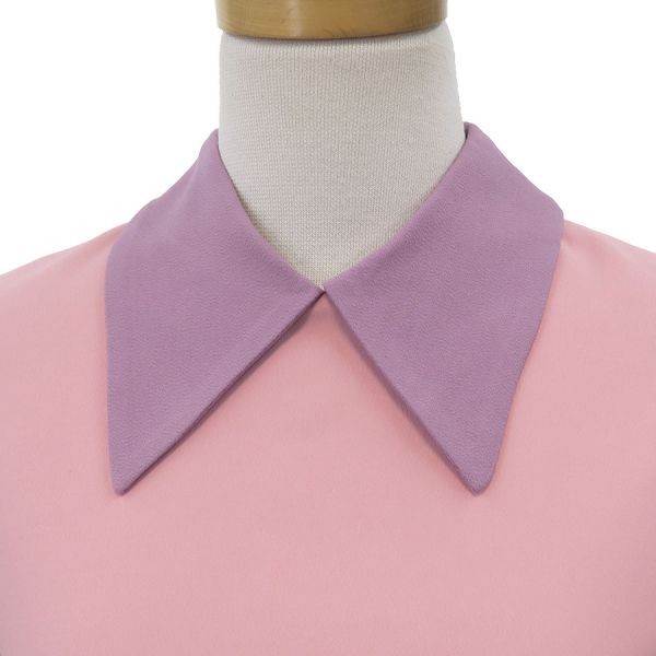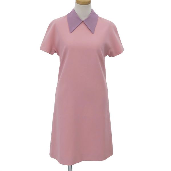 ■採寸#36 裄丈37cm B78cm 着丈83cm■素材アセテート76% レーヨン20% エラスタン4%裏地:ポリエステル100%■コメントMIU MIUよりピンク色のワンピースが入荷いたしました。襟は紫色で配色が可愛く、ガーリーな印象です◎右袖に青っぽい汚れのような箇所がありますが、着用時には大きく目立たないかと思われます。Aランク寄りのBランクでのご紹介です。お気軽に音意泡くださいませ。