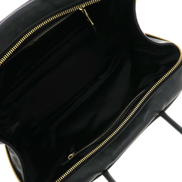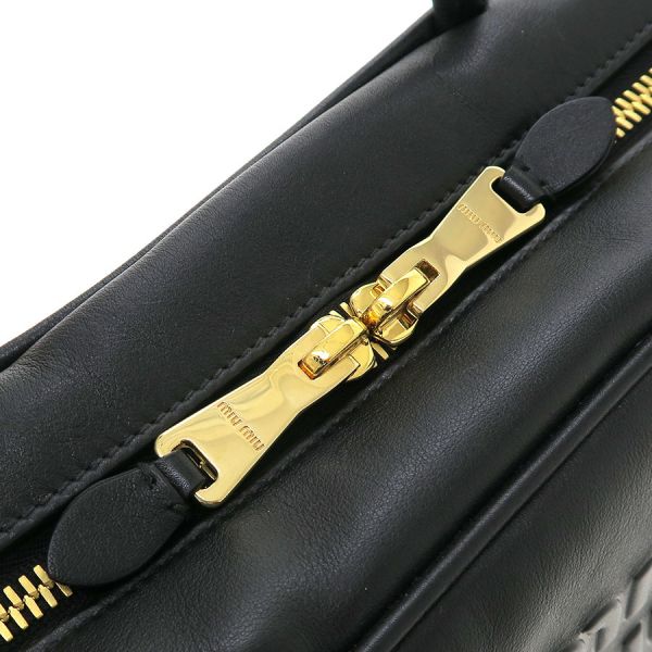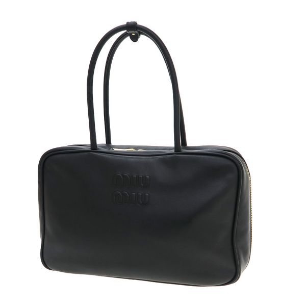 ミュウミュウ レザーボーバッグミュウミュウの独特なデザイン、お洒落を存分に味わうことができる大人気モデル『レザーボーバッグ』が入荷しました☆ 今回、入荷したモデルは柔らかな表面がスムースな牛革、ブラックカラーの定番モデル!エンボス加工のMIU MIU ロゴがアイコニックなバッグです♪ハンドルの長さが約45cmになり、片掛けのショルダーとしてもお使いいただけます。間口はダブルファスナー、両サイド下側まで開閉となります。大きく開口でき、収納力が高く、オン・オフ問わずご愛用いただけます。状態はAランクとなっており、本体の強めの型崩れ、表面のスレ感、ハンドル部分のクセ、僅かなスレ感、底面の押し跡、金具部分の小傷、内部のスレ汚れ、毛羽立ち感がございます。大きく目立つ使用感、ダメージは抑えられた印象です。是非いかがでしょうか?※ICチップNFCツールアプリで検知済み付属:ポワニエ