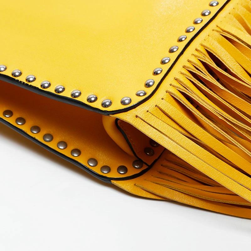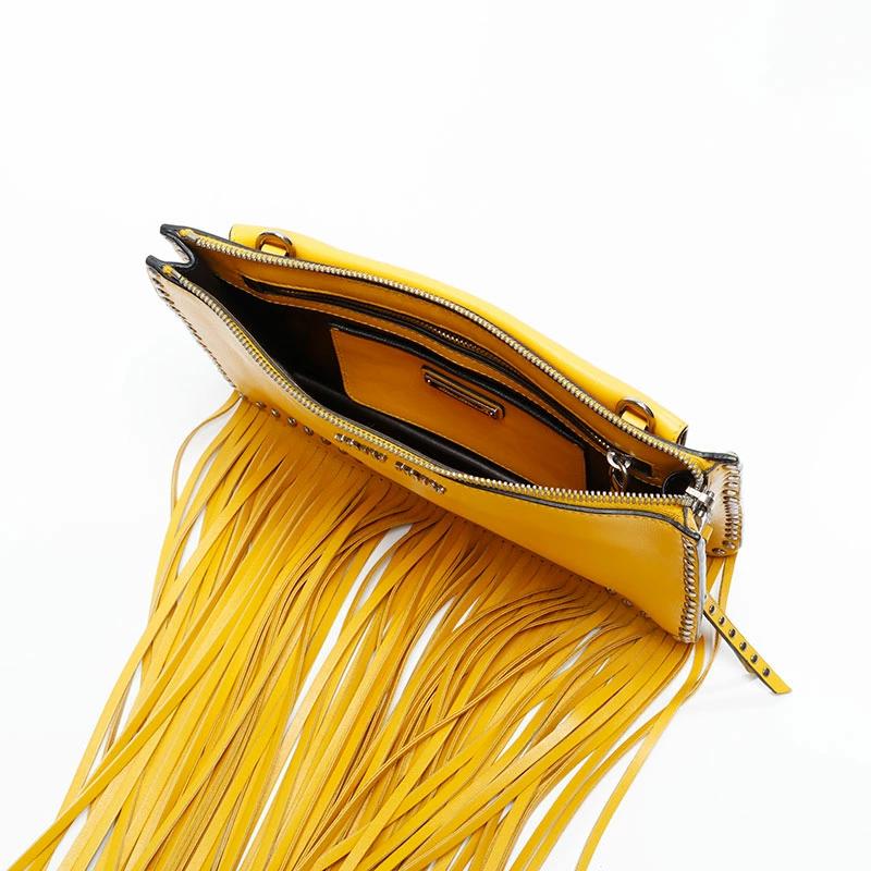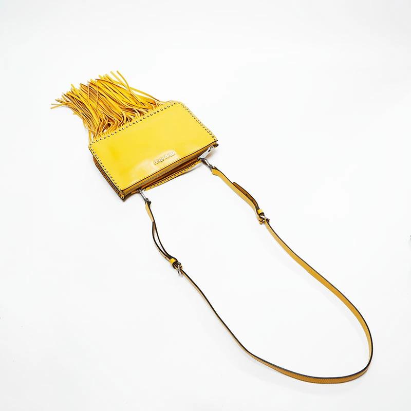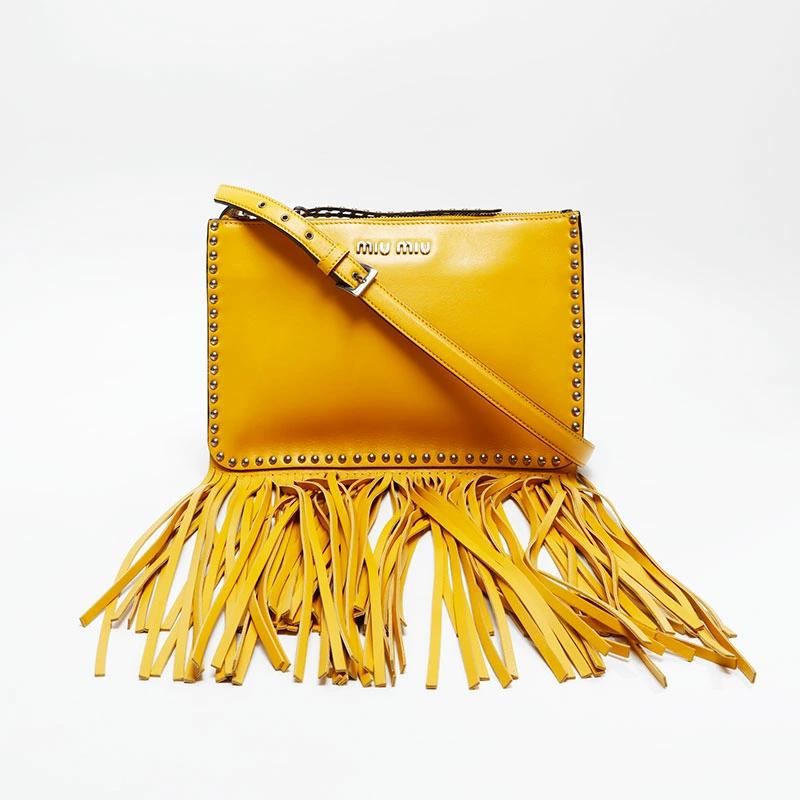 Miu Miu Leather Fringe Shoulder Bag, Yellow, WS20834 (Pre-owned)