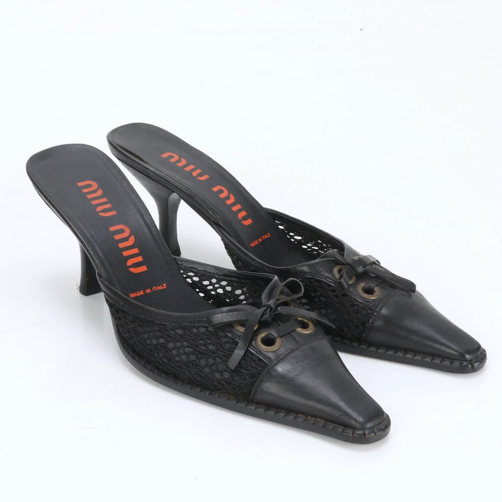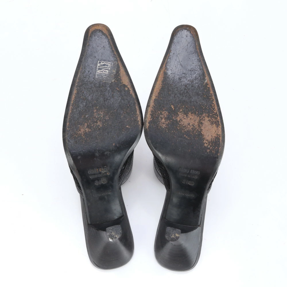 Miu Miu Leather Mules with Heels, Black Loafers, Size 36 1/2 (23.5cm), Women's, EWE BL9-3