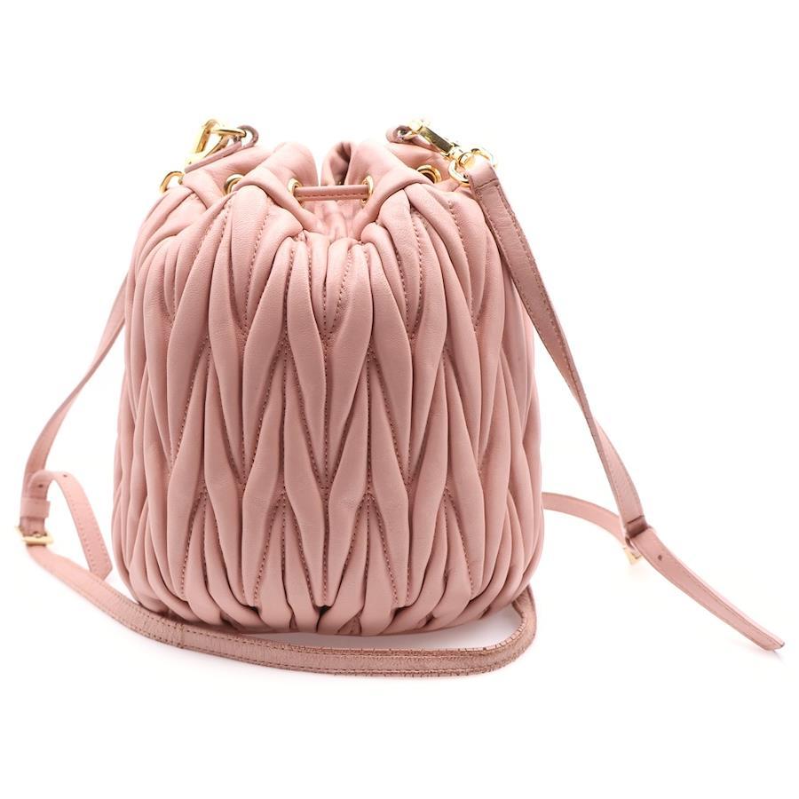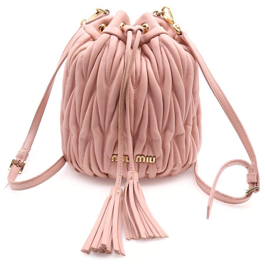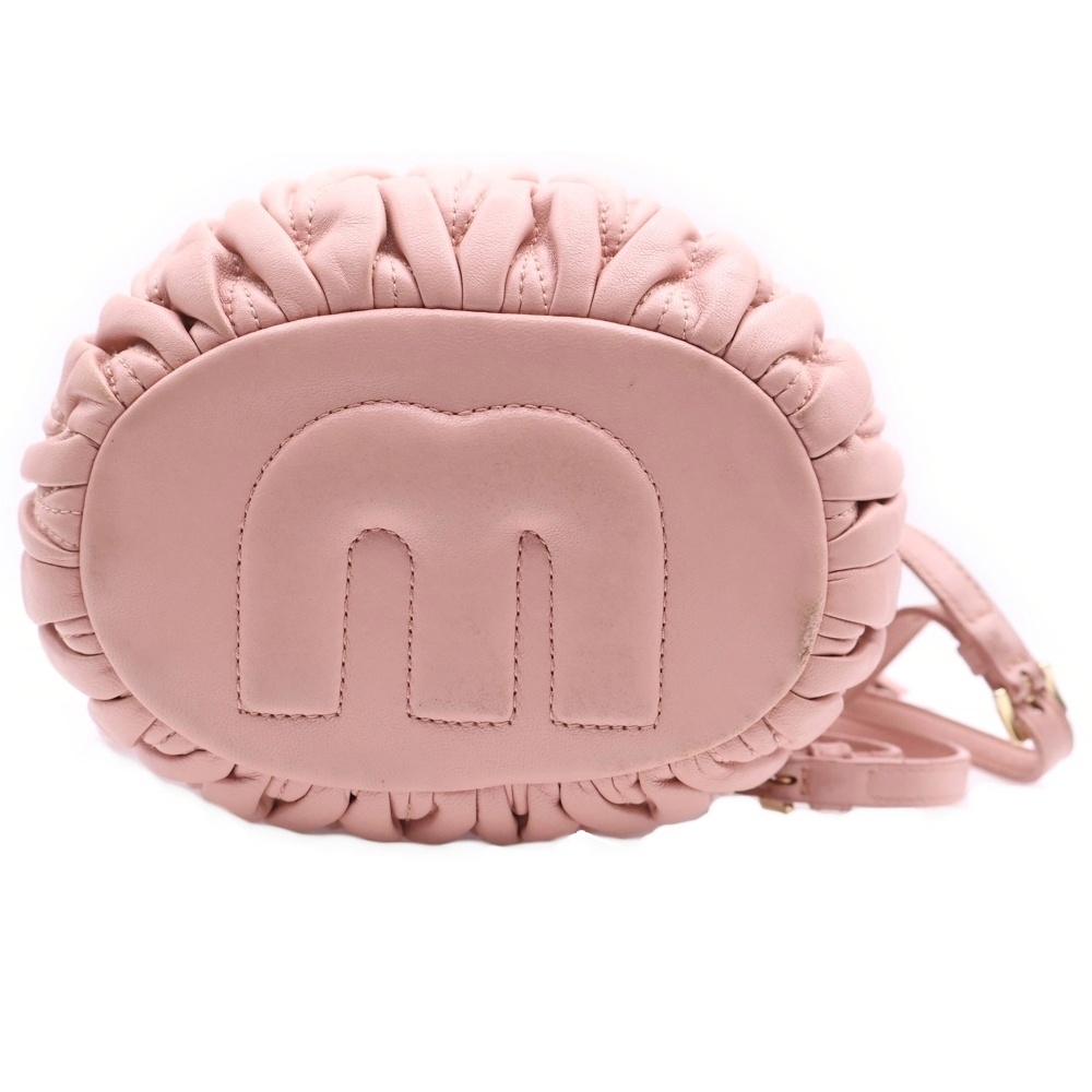 [モデル]マテラッセ ショルダーバッグ 巾着バッグ ハンドバッグ ゴールド金具 ピンク レザー
