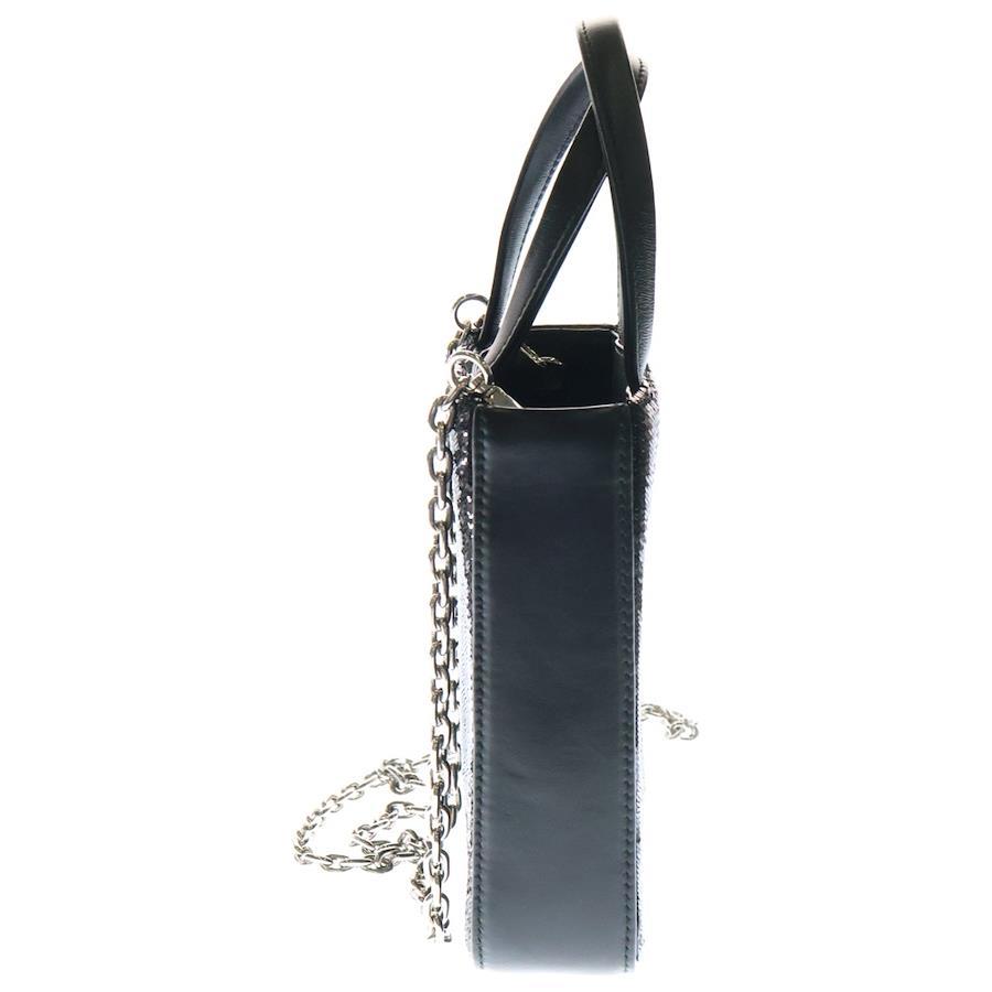 [モデル]ミニ チェーントートバッグ スパンコール ブラック レザー ショルダーバッグ 5BA220