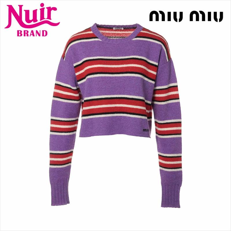 Miu Miu Miu Size: 38 MML23 Border Logo 2019 Wool Knit Purple WS15202 [Pre-owned]