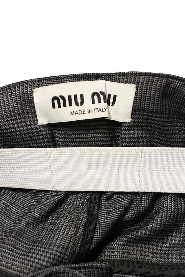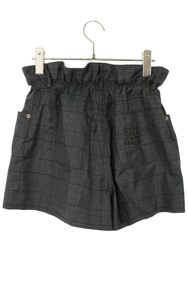ランク:B (使用感がある商品)状態備考:ウエスト内側ゴム部分に黄ばみがありますブランド:ミュウミュウサイズ:40色:グレー調実寸:ウエスト幅34cm 股上31.5cm ワタリ幅34cm 股下7.5cm 裾幅34cm重さ:-素材:(表地) ウール (裏地) レーヨン付属品:なしその他特徴:-管理番号:50830-250829-0011