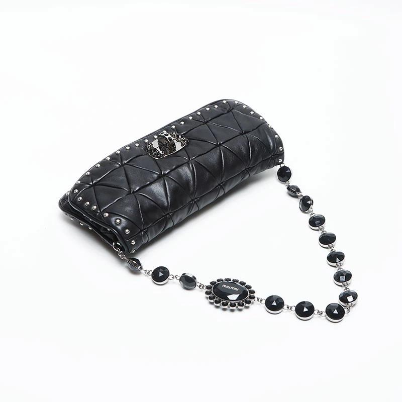 新品~未使用品 新品同様品または試着程度の使用感があります。 使用感の少ない状態の良い中古品になります。 使用感があるものの傷や汚れが少なく、比較的状態の良い商品。 傷や汚れがあり、使用感のある商品。 Miu Miu/ミュウ ミュウ ショルダーバッグ ブラック モニターの発色によって実際の物と色が異なる場合がございます。