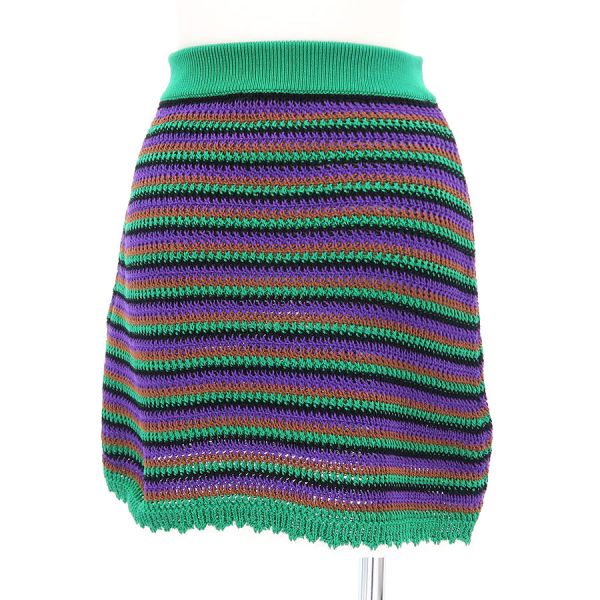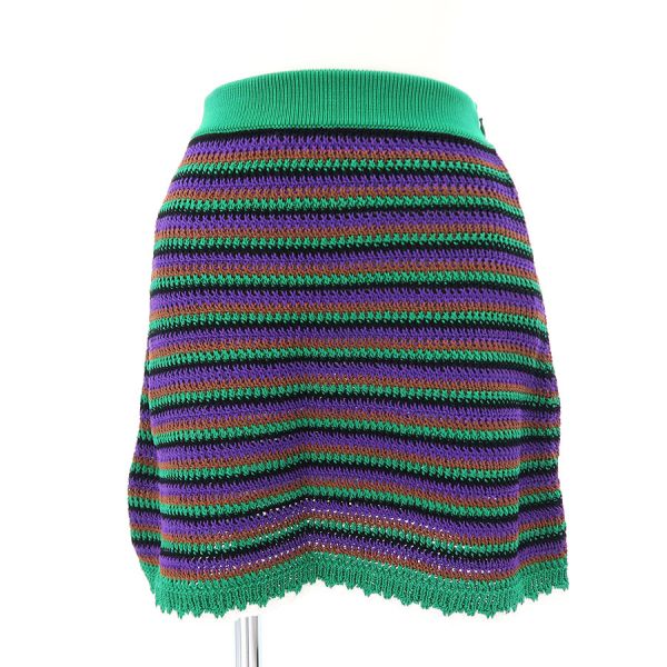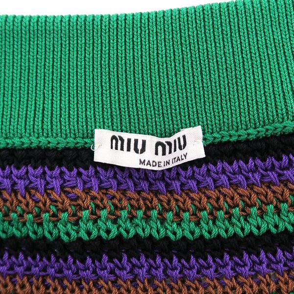 ■採寸#38 W52cm H80cm 丈40cm■素材綿100%■コメントMIU MIUより緑を基調としたニットスカートが入荷いたしました。若干伸縮性があるので履きやすそうです!透け感があるのでタイツ等との着用がオススメです◎大きく目立つようなダメージや汚れは見受けられなかったので、Aランクでのご紹介です。お気軽にお問合せくださいませ。