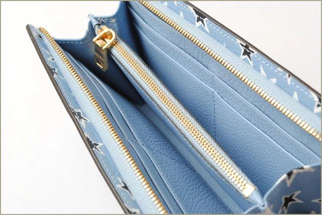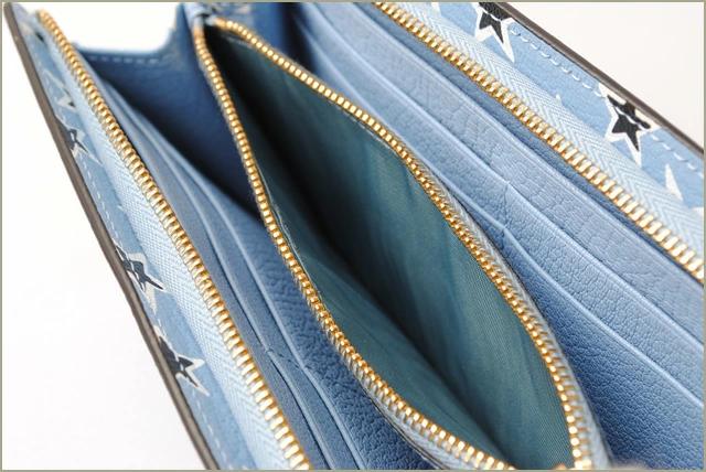 ミュウミュウより、人気の高いマドラス・スター・シリーズの財布です。可愛らしいスターが、散りばめられており、女性らしい印象に。山羊革の型押しレザーで、高級感の漂う、しなやかな肌触り。使いやすいL字式のファスナーがついており、通常の長財布より、細くスマートなサイズで、スタイリッシュ!