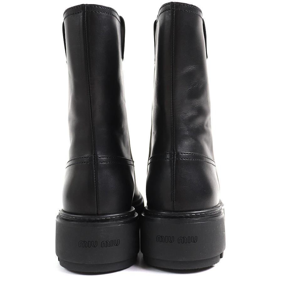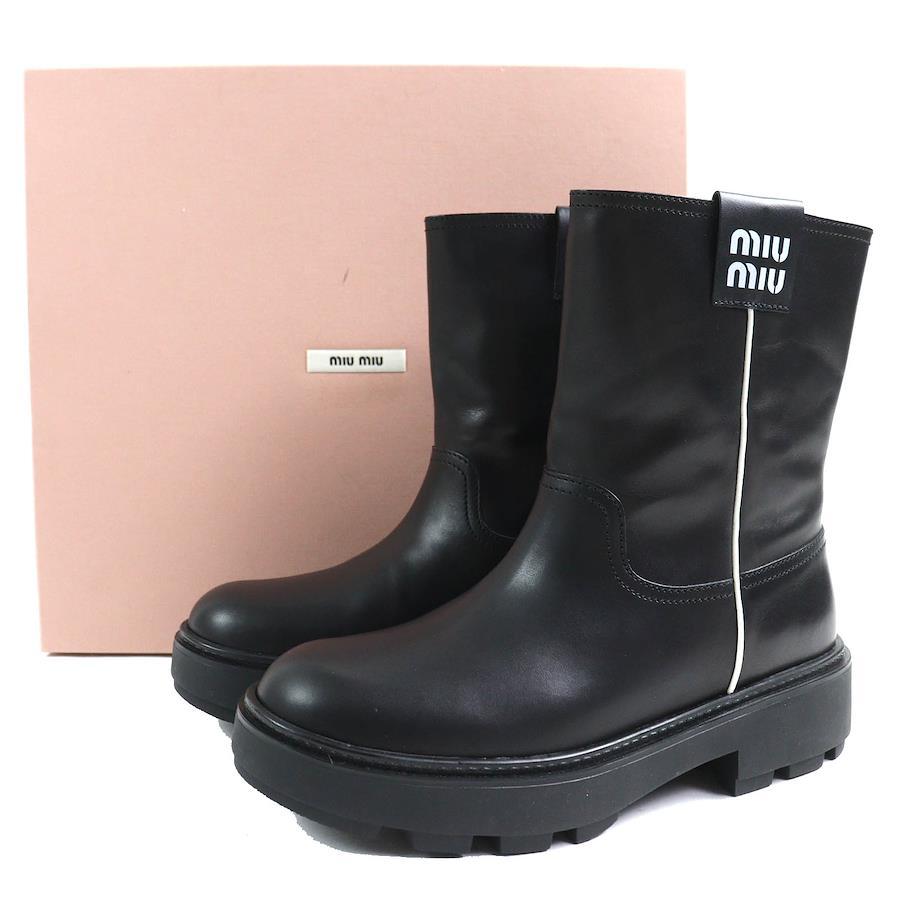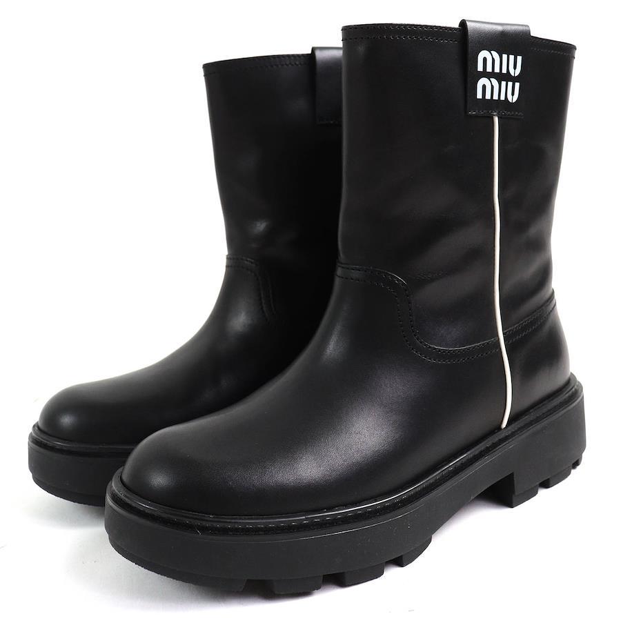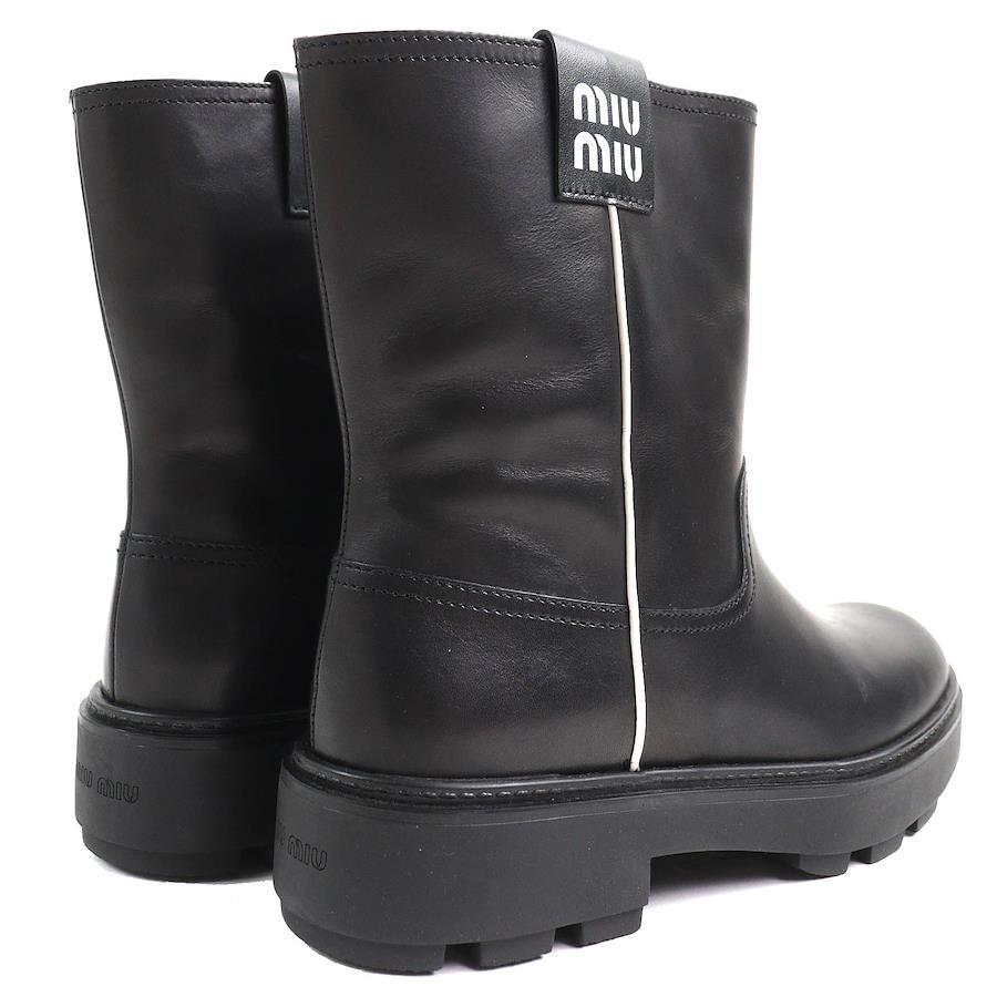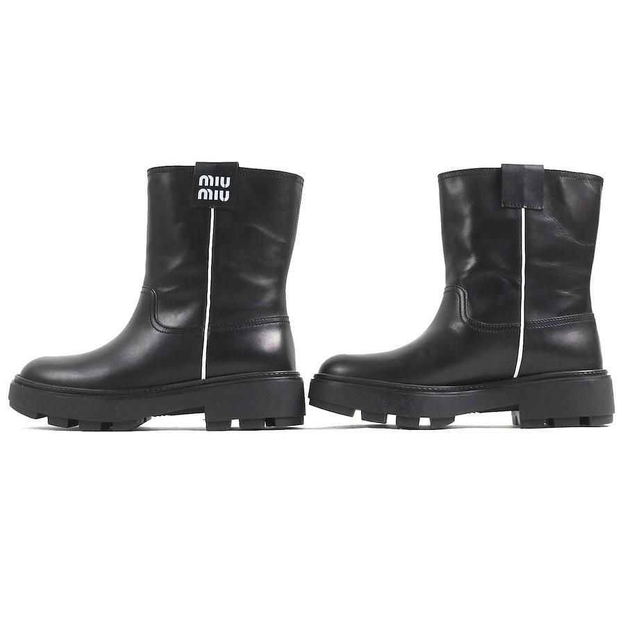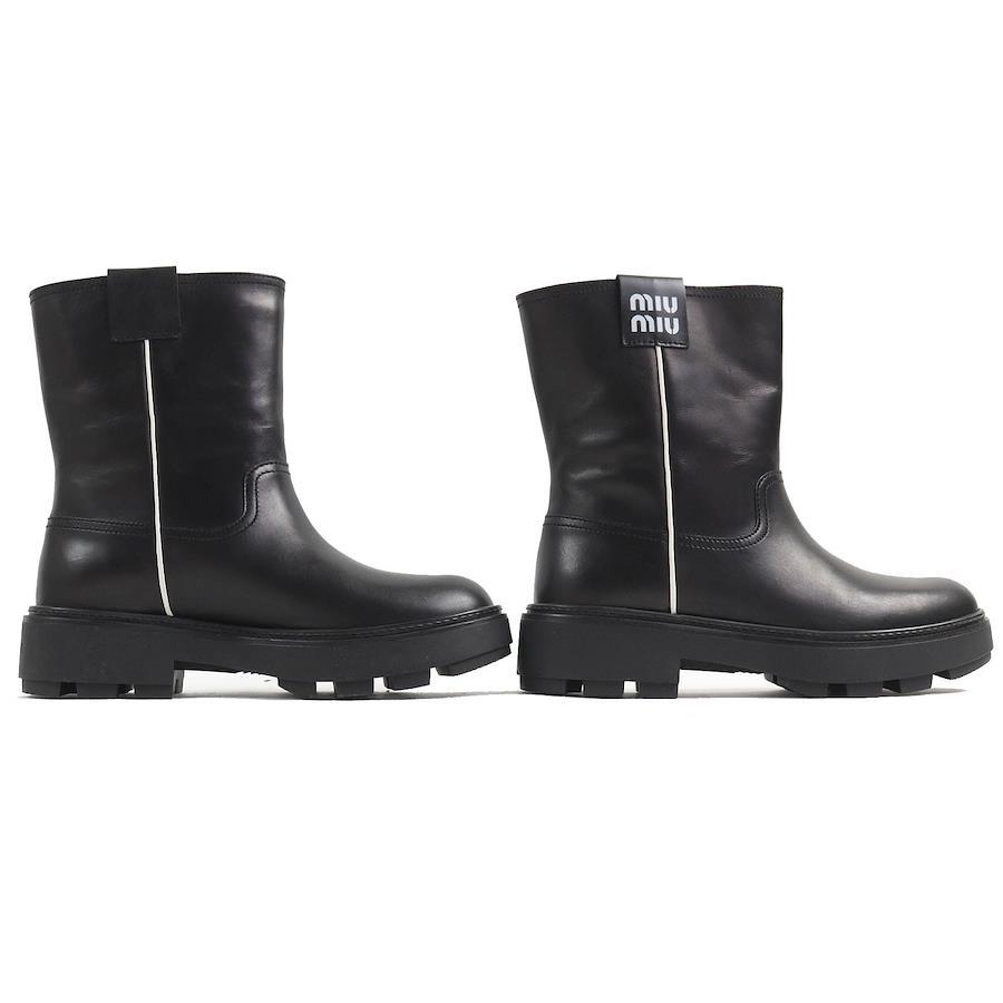 MIUMIU Ankle Boots Side Logo Print Line Leather Short Boots Black Leather 5U613D