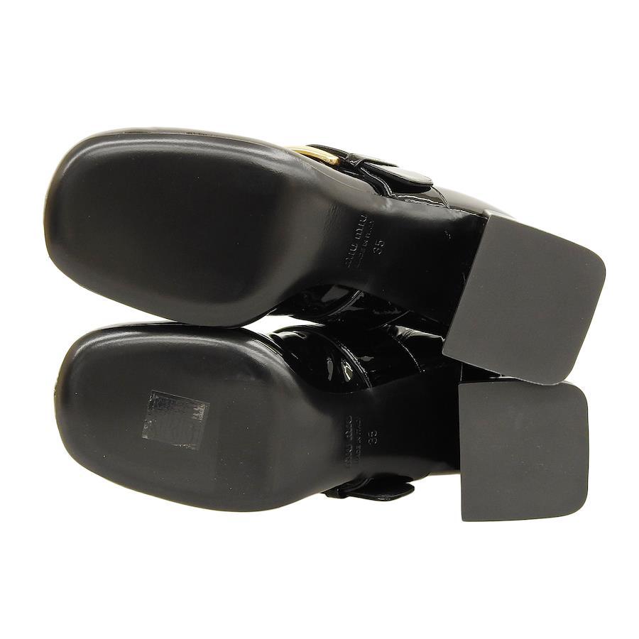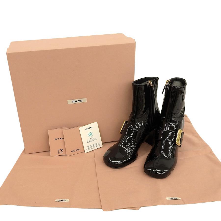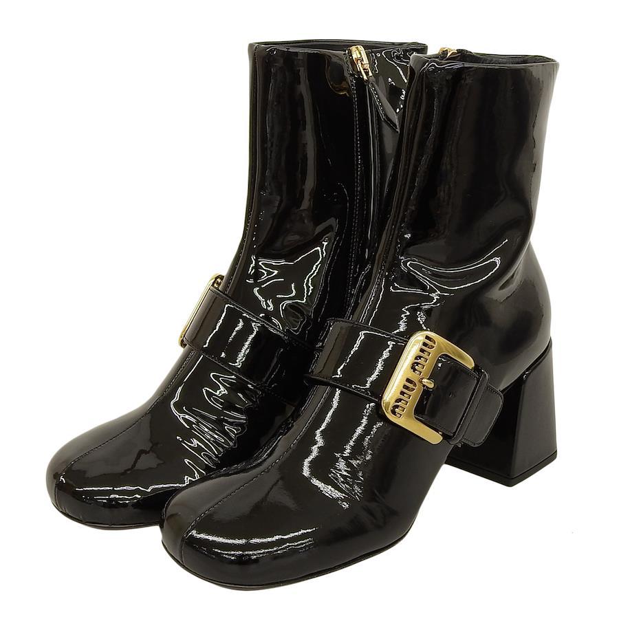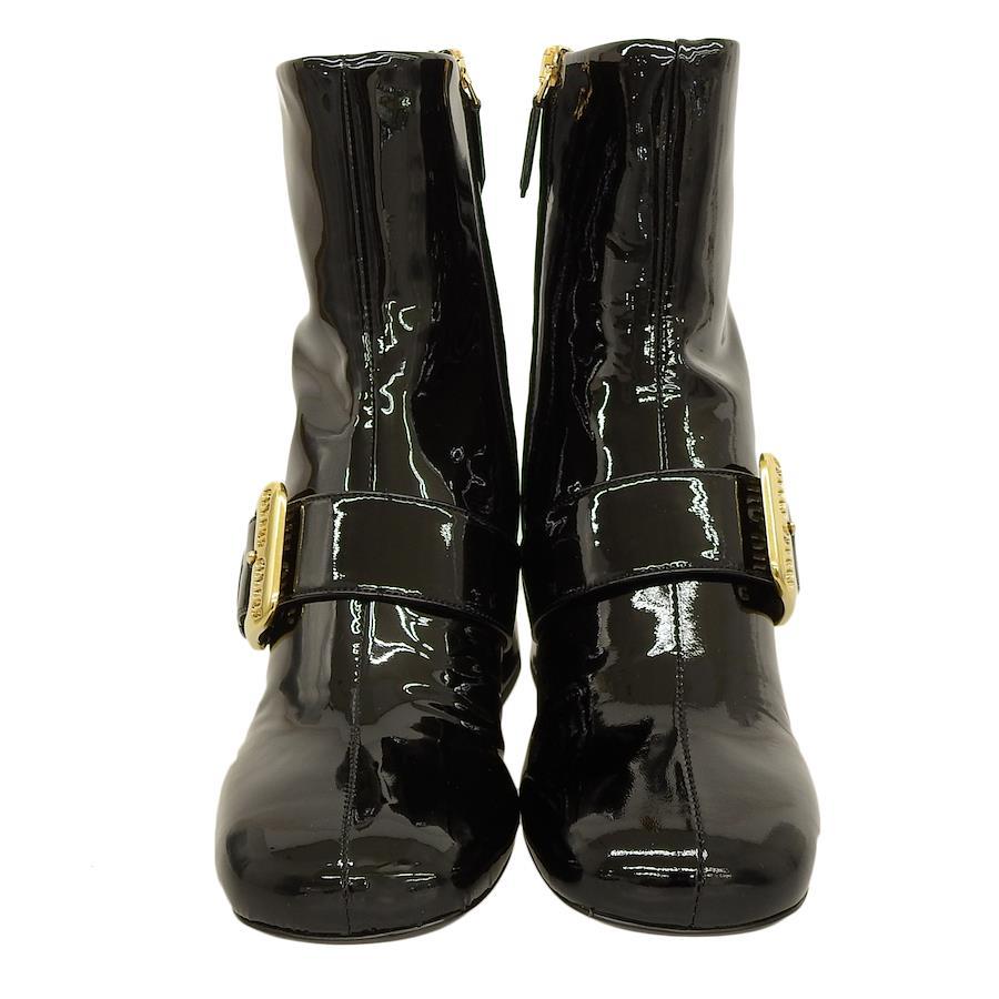 MIUMIU Short Boots with Logo Buckle and Side Zip in Black Patent Leather (5T799D)