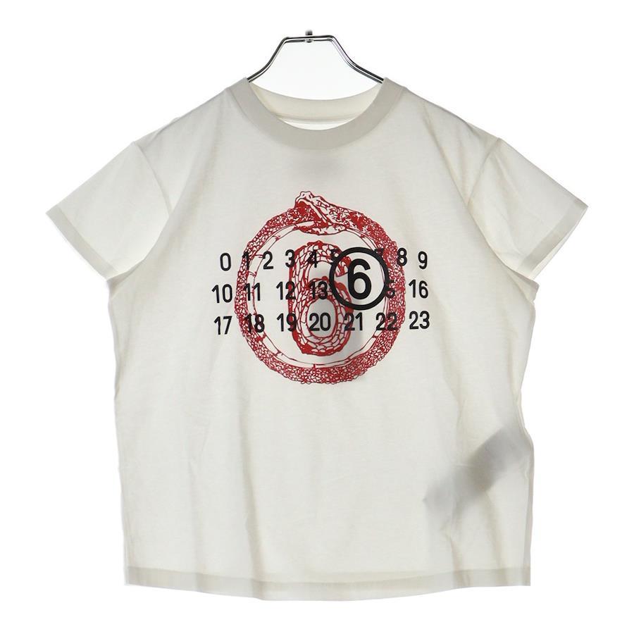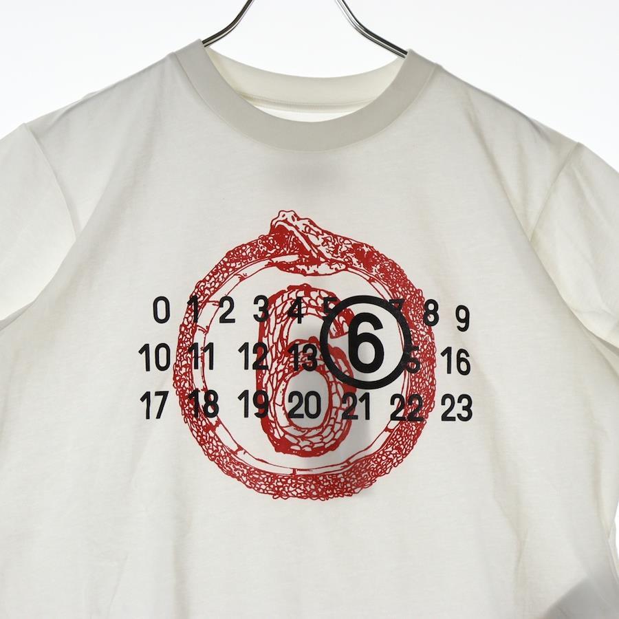 [モデル]25SS スネークカレンダーロゴ クルーネック コットン 半袖Tシャツ カットソー ホワイト レディース S62GD0196 S24312
