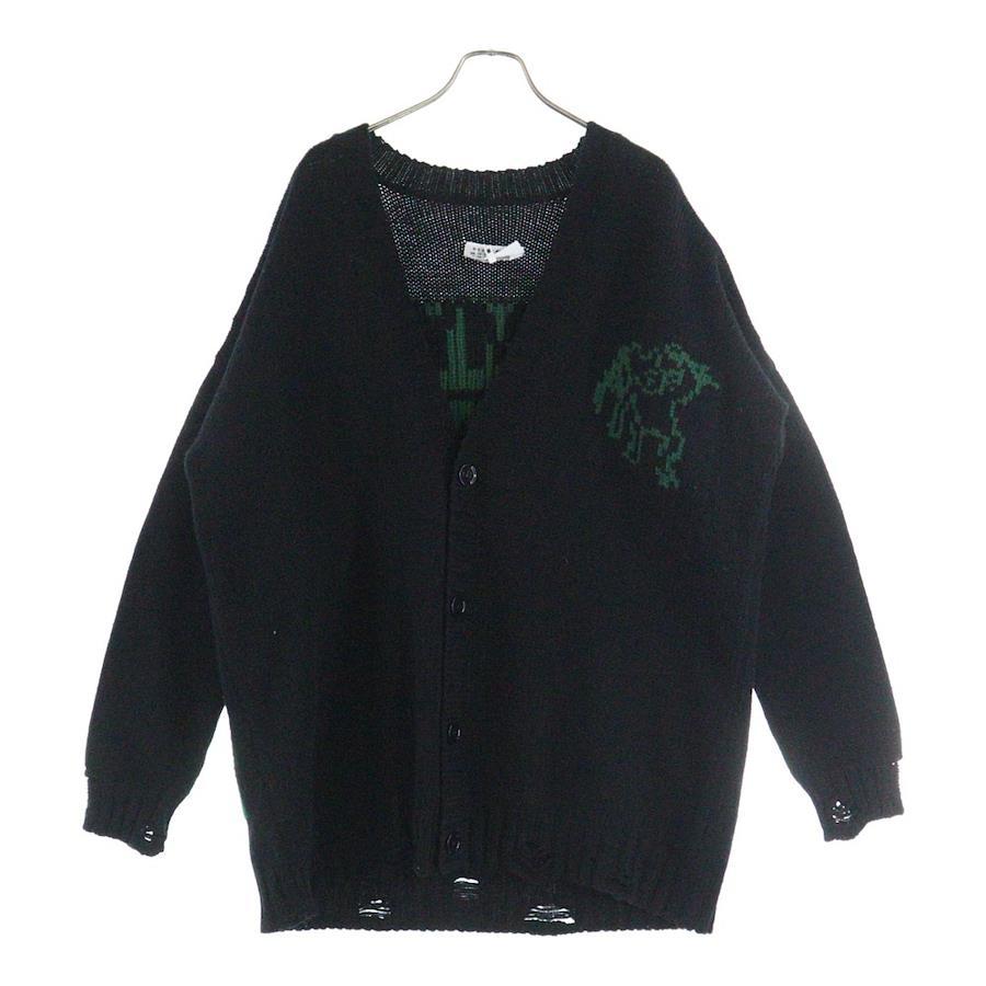 [モデル]MM LOST MY PET CARDIGAN ウールジャガード ニットカーディガン ブラック/グリーン S62HP0023