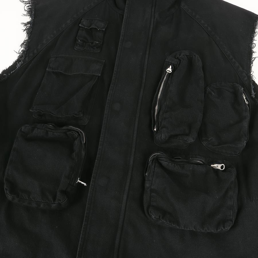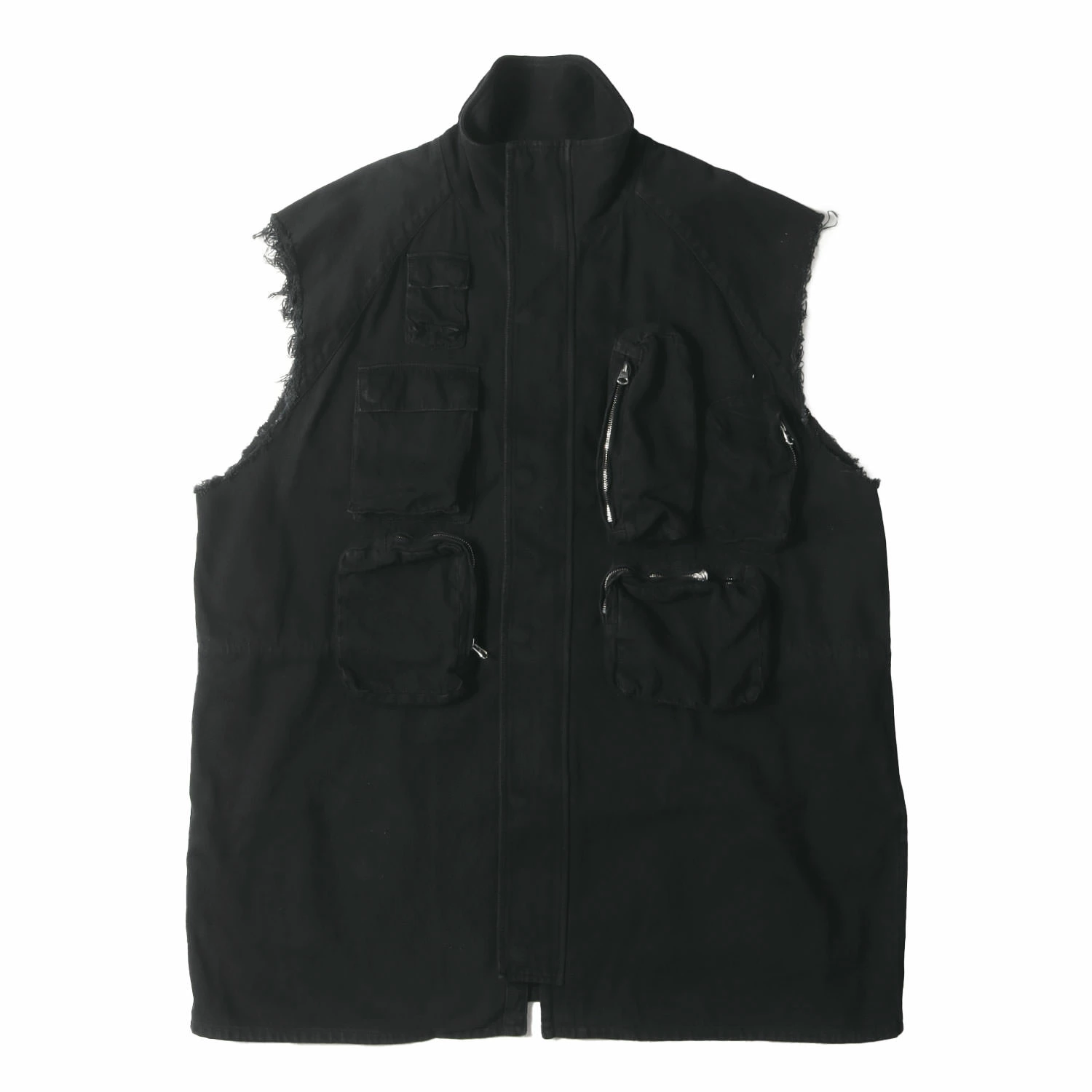 商品説明袖を切りっぱなしであしらったオーバーサイズシルエットのフルジップベストです。ボディにはヘビーオンスのコットンカツラギ生地を使用しております。