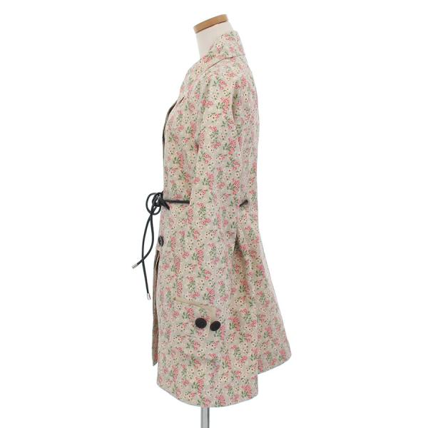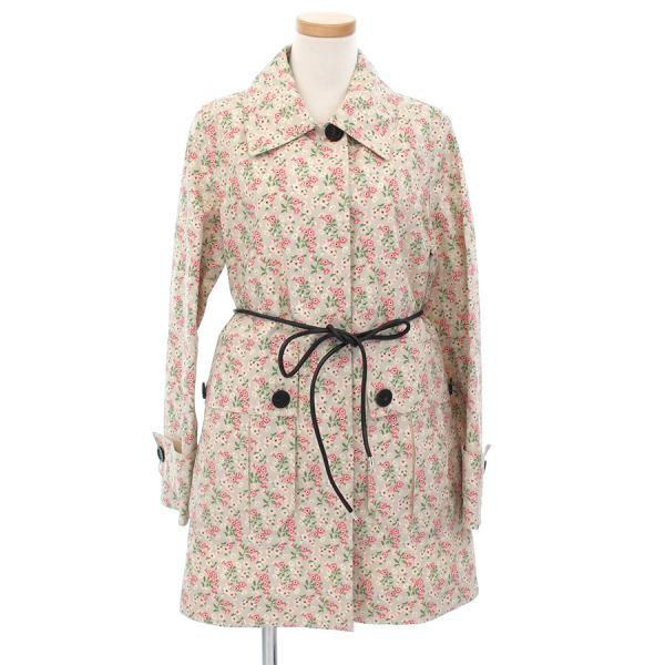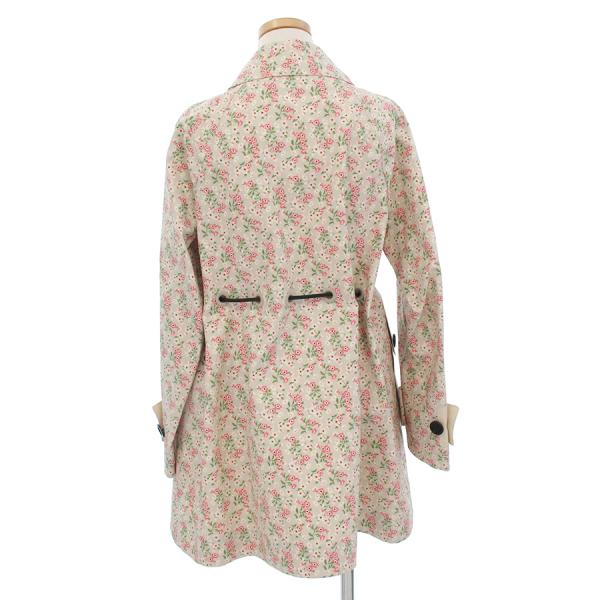 ■採寸#0 着丈77cm 裄丈80cm B102cm ■素材綿100%モンクレールから小花柄の可愛らしいコートが入荷しました。マッキントッシュのような加工のしっかりとした張り感のあるお品物です。状態綺麗目で着用は無いように見受けられます。細いレザーのベルト付き。珍しいお品物ですよ。お早めにお問い合わせください。