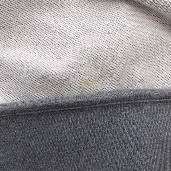 全体的に起毛感が見られ、袖や袖口に強めの汚れが見られます。フードの縁や裾裏地、両ポケット表側にもシミや汚れが見られます。裏地裾のほうに糸ツレもみられます。ファスナーのメッキの剥がれた部分もありますのでBランクからのご案内です。お安くなっていますのでお問い合わせください。