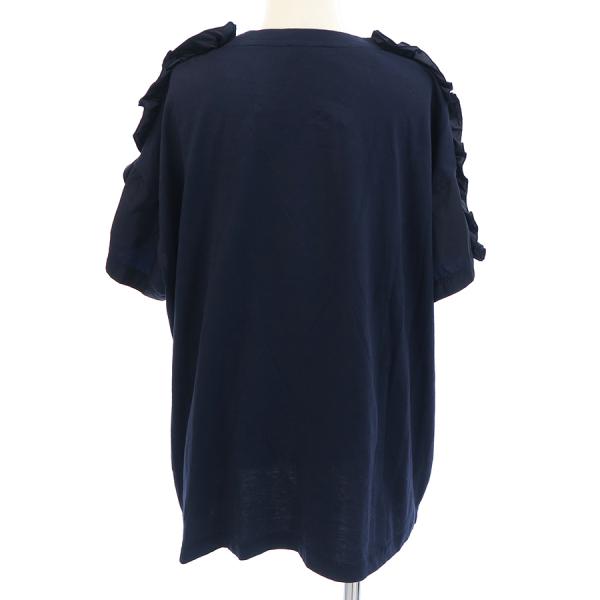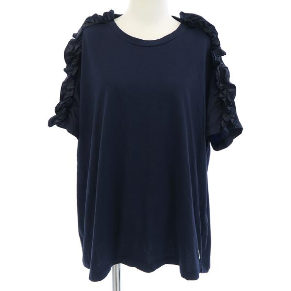 モンクレールからネイビーカラーのトップスが入荷しました。シミや汚れ等は見られませんが全体的にスレの様なダメージが見受けられます。肩から袖にフリル飾りが施されたおしゃれなデザインです♪バストサイズ大きめで、ゆったり着用したい方におススメです。入荷少ないお品物なのでお早めにお問い合わせください。
