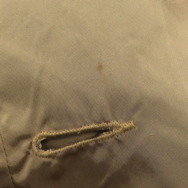 ■採寸#0 肩幅39cm 袖丈61cm B98cm 着丈89cm■素材表地:ナイロン100%裏地:ポリエステル100%■コメントモンクレールより光沢感のあるベージュのトレンチコートが入荷いたしました。右前立ての内側と裾、襟の内側、後ろ裾、袖口に汚れ、左ポケット横にシミ、ボタンホールにダメージ、右前立ての裏地が裂けている箇所があり、左右の脇の生地が伸びてしまっています。全体的に汚れやツレなど強めの着用感が見受けられますので、Cランクでのご紹介です。お気軽にお問い合わせくださいませ。