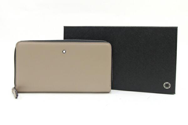 モンブランラウンドファスナー長財布マイスターシュテュックセレクションジップ付ソフトウォレット12CCMB131252グレージュブラックレザー中古ロングウォレットラウンドジップメンズMONTBLANC